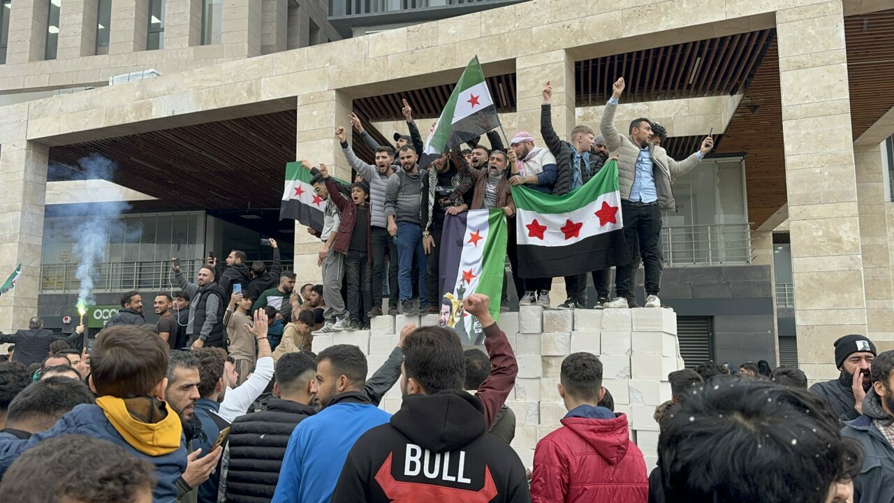Suriye, Filistin ve Türk bayrakları açan gruplar, tekbirler getirerek Esed rejiminin devrilmesini kutladı.