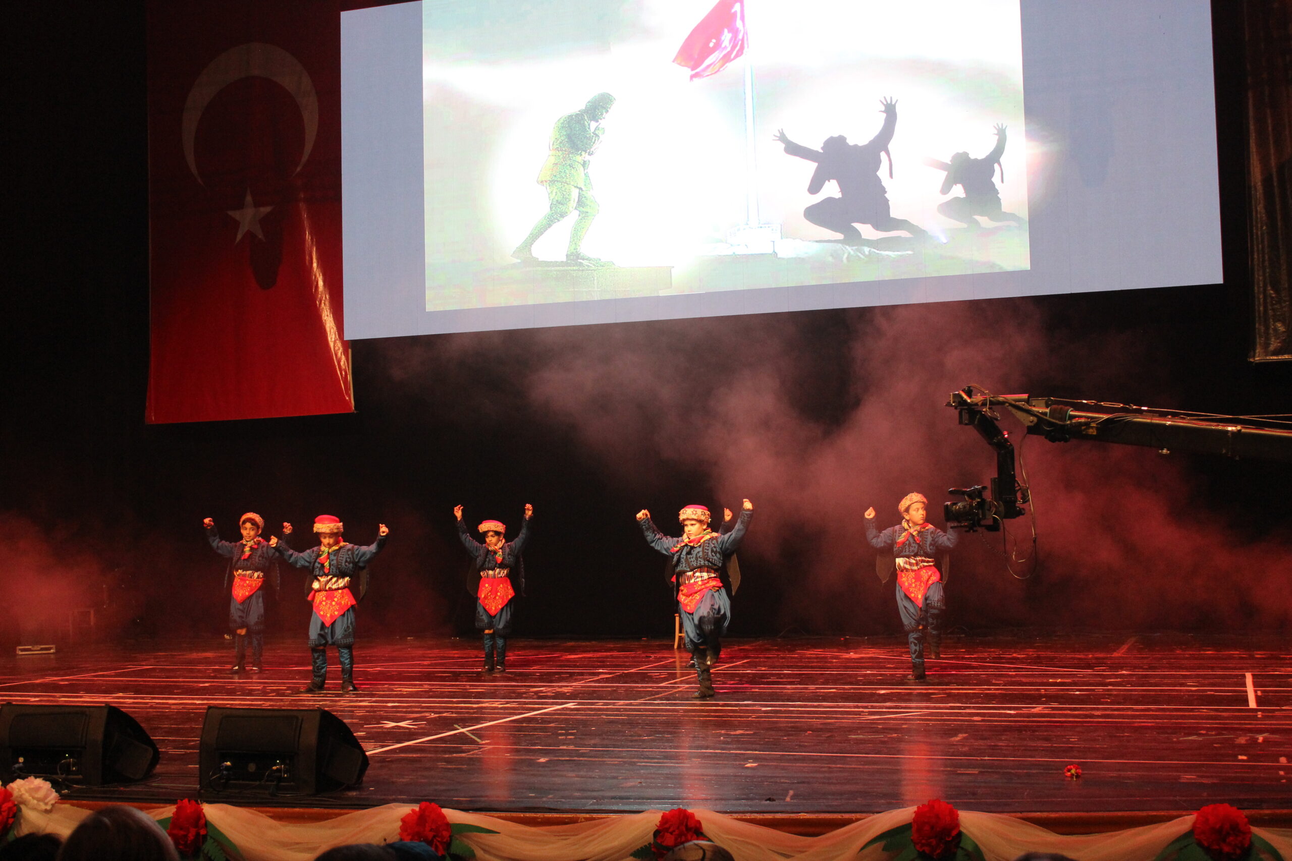 Destansı gösterinin sonunda misafirler, öğrencileri dakikalarca ayakta alkışladı.