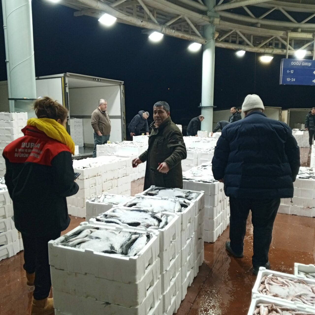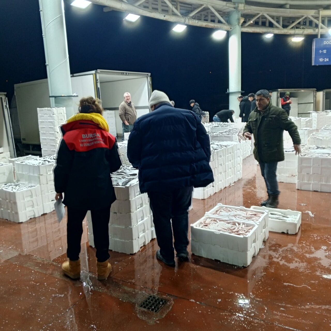 Bursa İl Tarım ve Orman Müdürlüğü ve Tarım A.Ş. ekipleriyle birlikte gece saatlerinde Bursa Balık Hali’nde denetim gerçekleştirdi.