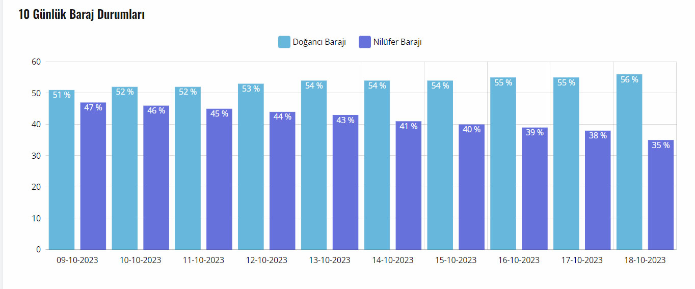 Nilüfer ve Doğancı Barajı için BUSKİ tarafından bildirilen doluluk oranı şu şekilde;