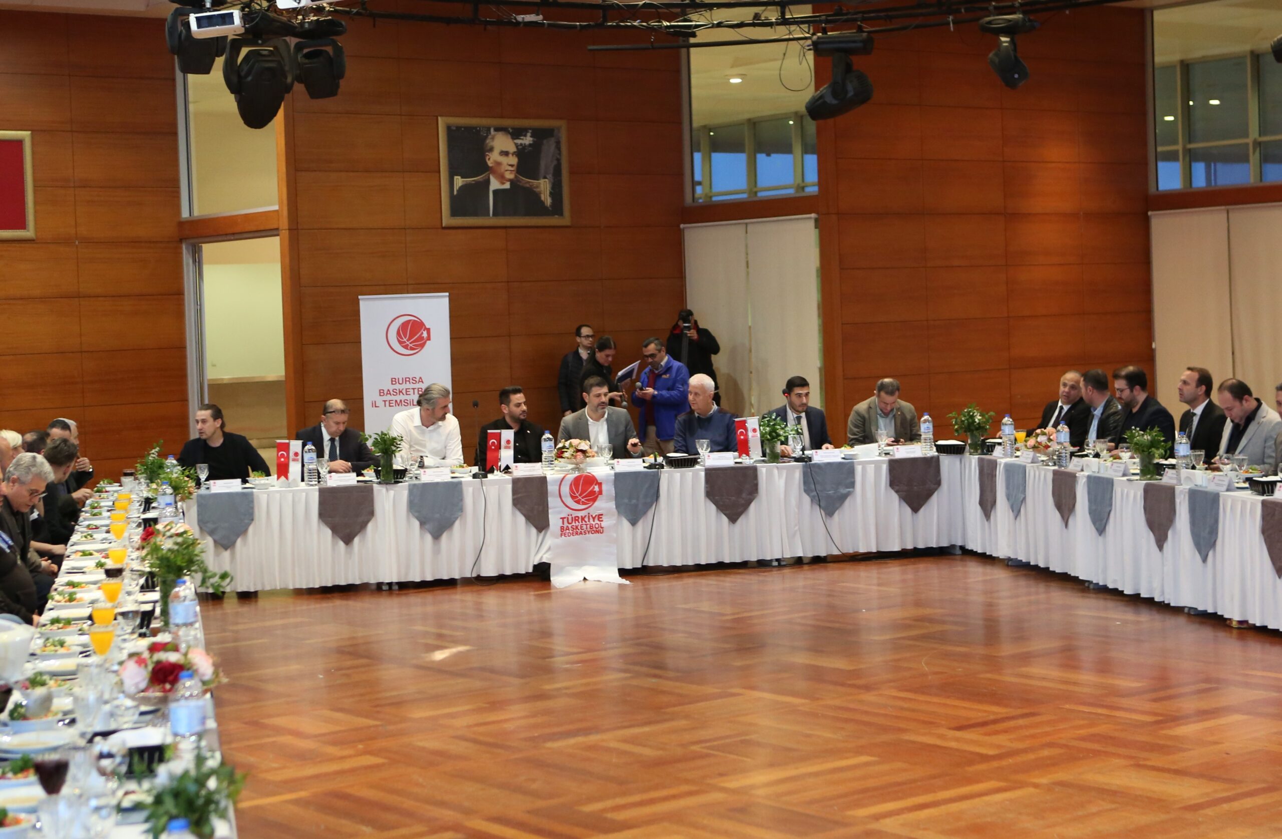 Basketbol İl Temsilciliği tarafından Merinos Atatürk Kongre ve Kültür Merkezi’nde bulunan Yıldırım Beyazid Salonu’nda gerçekleştirilen iftara Bursa Büyükşehir Belediye Başkan vekili ve Türkiye Basketbol Federasyonu Yönetim Kurulu Üyesi Gökhan Dinçer, Türkiye Basketbol Federasyonu Başkan vekili Ömer Onan, Türkiye Basketbol Federasyonu Asbaşkanı Hüseyin Beşok, TBF MHK Asbaşkanı Engin Kennerman, Basketbol İl Temsilcisi Nurullah Yıldız, Bursa’nın Basketbol Süper Ligi’ndeki temsilcileri Frutti Ekstra Bursaspor Başkanı Sezer Sezgin, TOFAŞ Basketbol Genel Menajeri Tolga Öngören, Uludağ Basketbol Başkanı Berk Aladağ, Türkiye Basketbol Ligi’nde mücadele eden Finalspor Başkanı İhsan Özen, Gemlik Basketbol Başkanı Berkay Bulut ile kulüp başkanları katıldı.