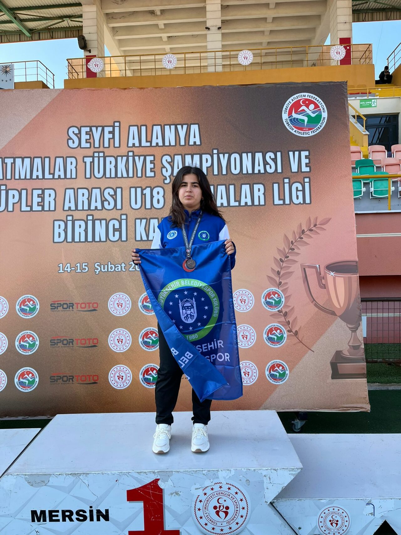 Mersin’deki organizasyonda Bursa Büyükşehir Belediyespor’dan Zeliha Uzunbilek büyükler çekiç atmada 56.48’lik derecesiyle bronz madalya kazandı. Şampiyonada ayrıca Bursa Büyükşehir Belediyespor’dan Eslem Sapçılı U18 kadınlar disk atmada 37.32’lik derecesiyle, Ecrin Şahin ise U16 kadınlar çekiç atmada 40.79’luk derecesiyle üçüncü olmayı başardı. Şampiyonada yer alan diğer Bursa Büyükşehir Belediyesporlu atletlerden Hilal Demir U16 çekiç atmada 29.78, Ecrin Azra Çakır de U18 kadınlar cirit atmada 42.71’lik derecesiyle beşinci olurken, Ecrin Zeynep Geyik U18 kadınlar gülle atmada 10.87’lik derecesiyle yedinci sırada yer aldı. Elde edilen bu sonuçların ardından Bursa Büyükşehir Belediyespor U18 Atmalar Ligi 1. Kademesi’ni 2975 puanla üçüncü sırada tamamladı.