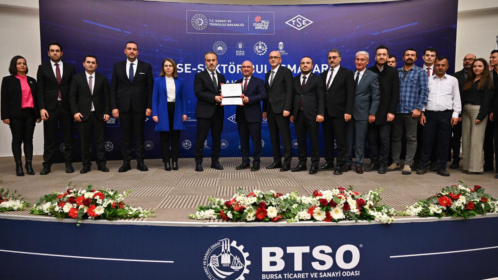 TSE Yönetim Kurulu Başkanı Mahmut Sami Şahin de Bursa’nın her yıl ihracat rakamlarında rekorlar kırmaya devam ettiğini belirterek, “Bursa otomotiv ana sanayi, yan sanayi ve alt sektörlerinde makine imalatları üretim üssü olmanın getirdiği zengin birikim ve kalite odaklı üretim anlayışı ile uluslararası pazarda önemli bir rekabet gücüne sahip. Bu stratejik konumuyla da küresel otomotiv firmalarının gözdesi olmayı sürdüren Bursa, istihdama ve ihracata katkısı, ileri teknolojileri ürünlerinde kullanımıyla ekonomimizin göz bebeği durumunda” dedi.