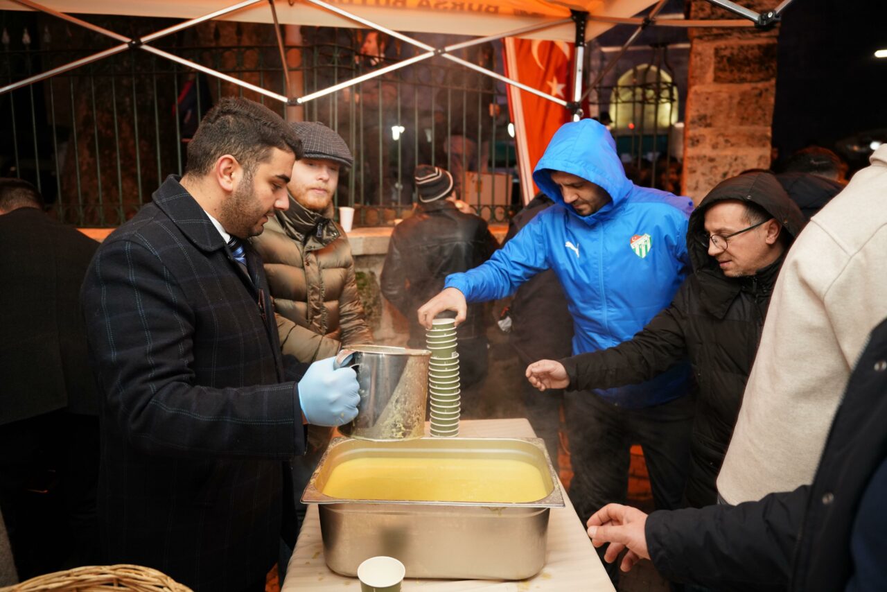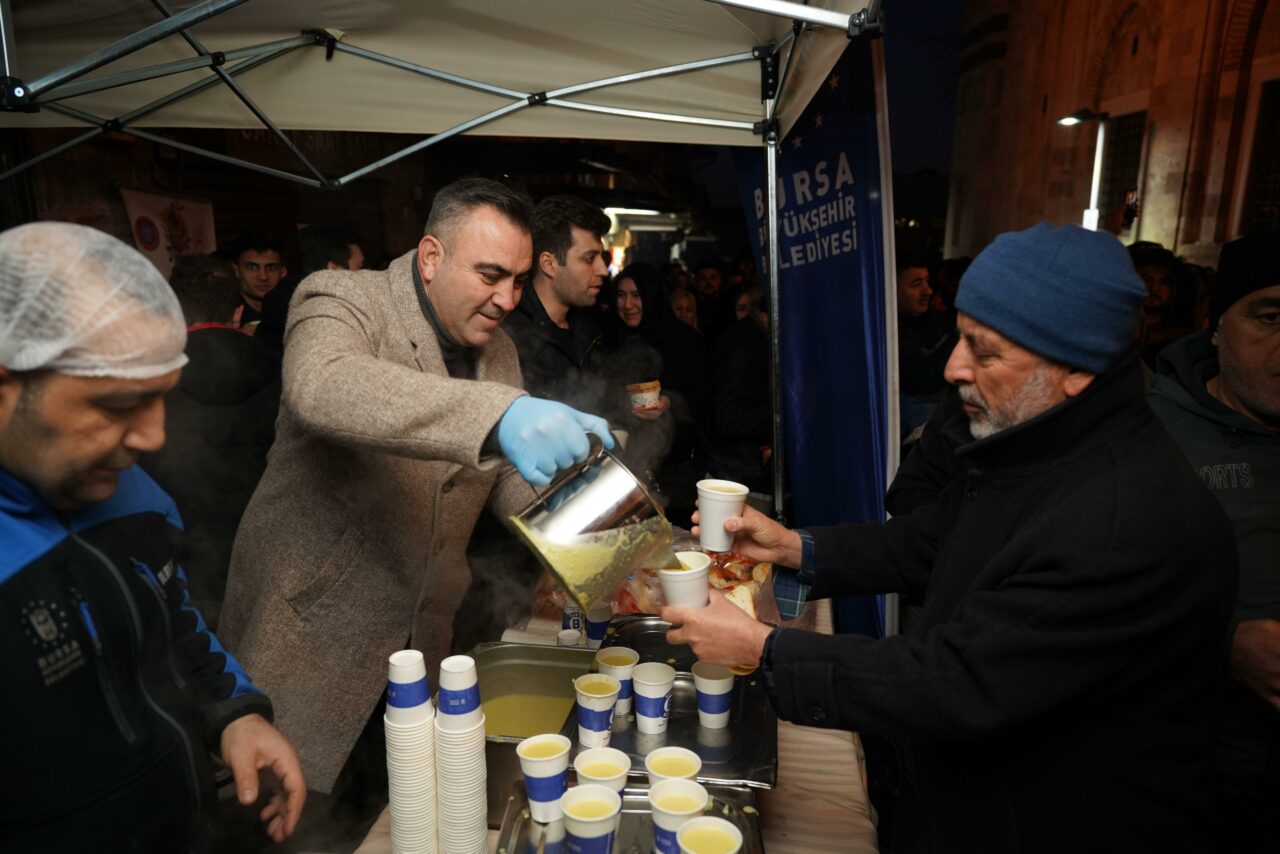 Bursa Büyükşehir Belediyesi de sabah namazı sonrası Ulucami ve Emir Sultan Cami’nde vatandaşlara 7000 kişilik sıcak çorba ikramında bulundu.