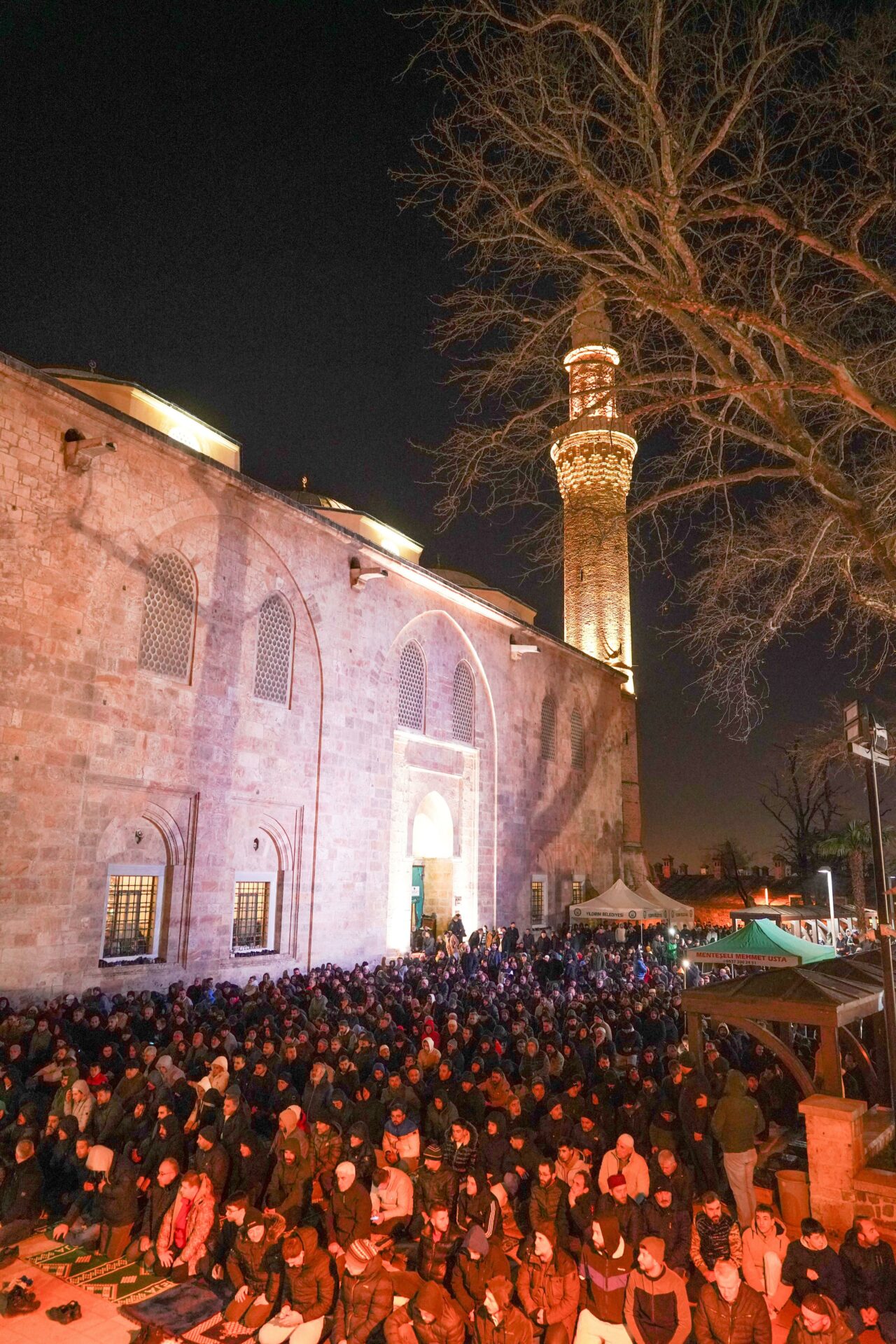 İslam âleminin en yüksek mertebedeki 5’inci büyük mabedi kabul edilen 600 yıllık Bursa Ulucami, 2025’in ilk sabahında Bursalıların en çok ilgi gösterdiği cami oldu.