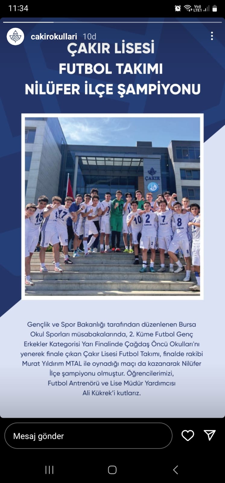 Gençlik ve Spor Bakanlığı’nın 25 Mart-5 Nisan tarihlerinde düzenlediği Okul Sporları Müsabakaları 2. Küme Futbol Genç Erkekler’in şampiyonu Çakır Okulları oldu.
