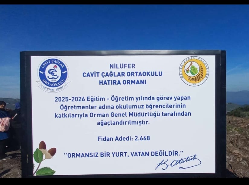 Bursa Cavit Çağlar Ortaokulu öğrencileri, Öğretmenler Günü’nü unutulmaz kılmak adına öğretmenlerine Mudanya Yörükali bölgesinde ‘Hatıra Ormanı’ armağan etti.