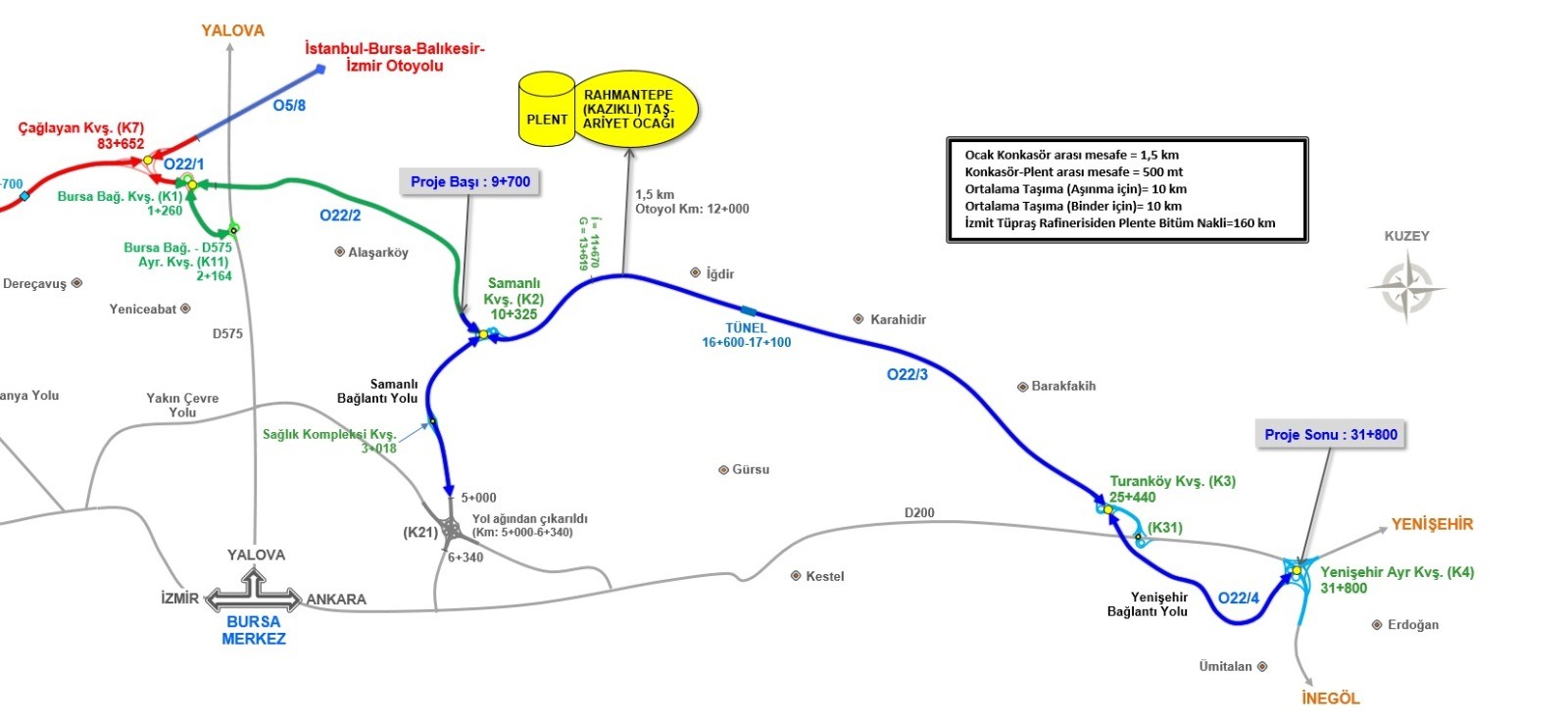 Karayolları Genel Müdürlüğü’nün yürüteceği süreçle Bursa Çevre Otoyolu’nda, Yalova Ayrımı-Yenişehir Ayrımı Kavşağı arası ve Bursa’yı da Yıldırım üzerinden birleştiren Samanlı Yolu’nda çalışılacak.
