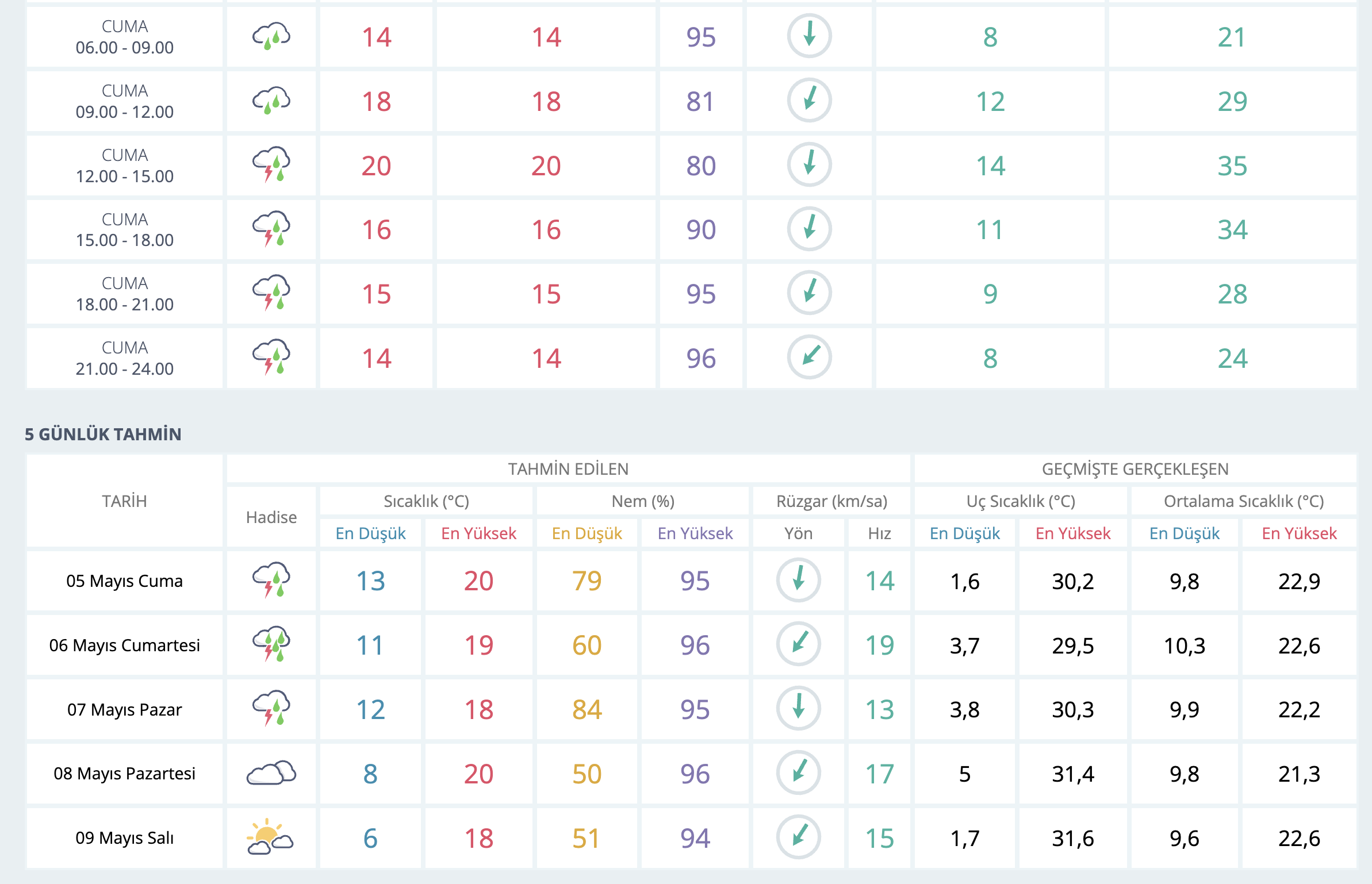 Meteoroloji Genel Müdürlüğü tarafından yapılan son değerlendirmelere göre: Ülkemiz genelinin parçalı ve çok bulutlu, Marmara, Ege, İç ve Batı Akdeniz ile Zonguldak, Düzce, Bolu, Eskişehir ve Konya çevrelerinin sağanak ve gök gürültülü sağanak yağışlı geçeceği tahmin ediliyor. Yağışların; İç Ege ve Göller Yöresi ile Çanakkale, Balıkesir ve Bursa çevrelerinde yerel kuvvetli olması bekleniyor. Doğu Akdeniz ile Güneydoğu Anadolu Bölgesinde toz taşınımı bekleniyor.