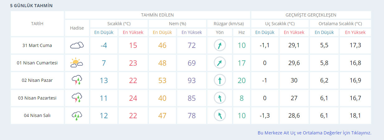 Meteoroloji Genel Müdürlüğü, 31 Mart Cuma günü için Adana, Adıyaman, Ağrı, Bitlis, Elazığ, Erzurum, Gaziantep, Hakkari, Hatay, Kars, Malatya, K.Maraş, Muş, Siirt, Van, Şırnak ve Iğdır illerine sarı ve turuncu kodlu uyarıda bulundu.