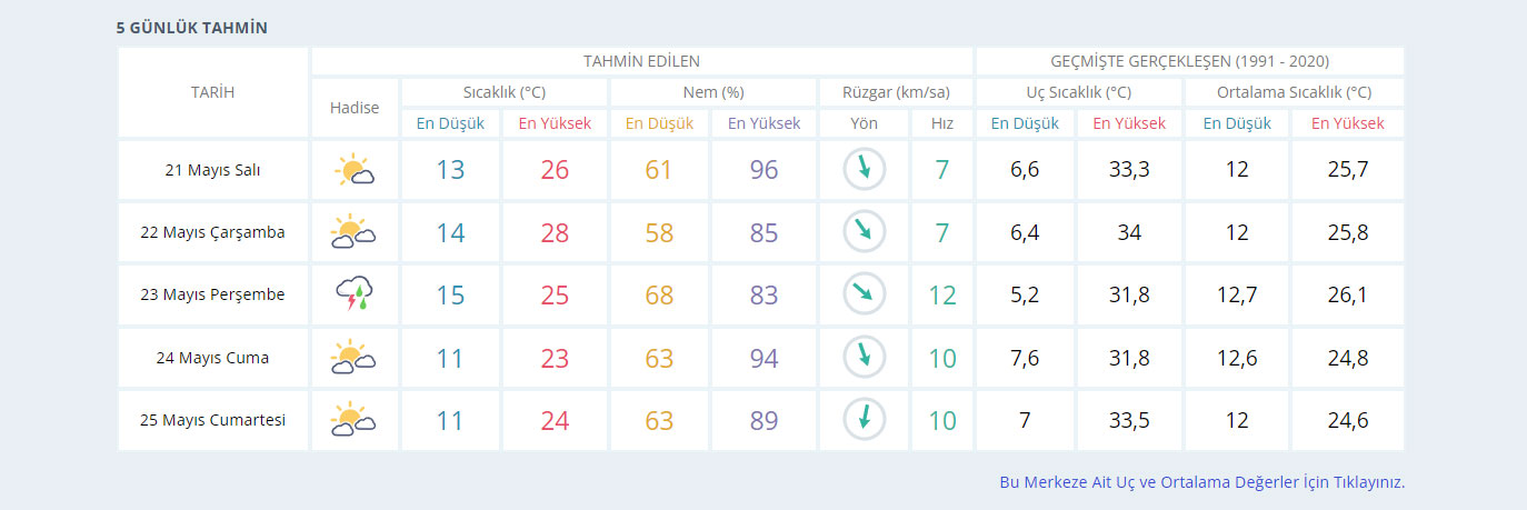 İç Anadolu’da güneş görülüyor ancak bazı noktalarda hafif bahar yağmuru oluşabilir. Çarşamba Eskişehir-Konya, perşembe bölge genelinde sağanak geçişleri olacak. Konya 29, Eskişehir 28, Kayseri 26, Sivas 23 derece.
