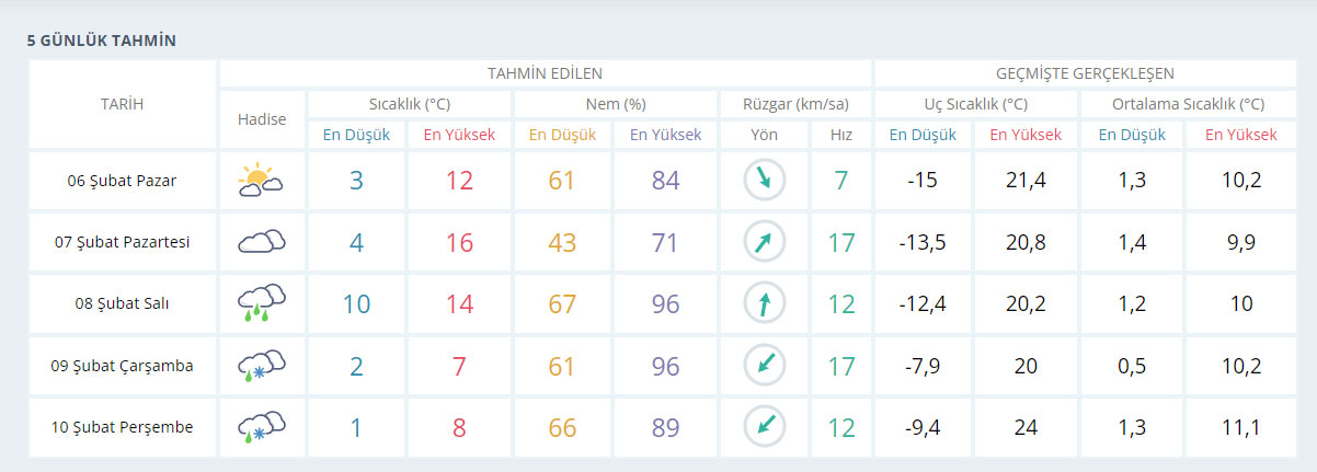 BURSA İÇİN 5 GÜNLÜK HAVA TAHMİNİ