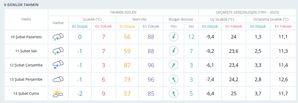 Yeni haftada çarşamba günü ise kar yağışının yeniden etkisini göstermesi bekleniyor.