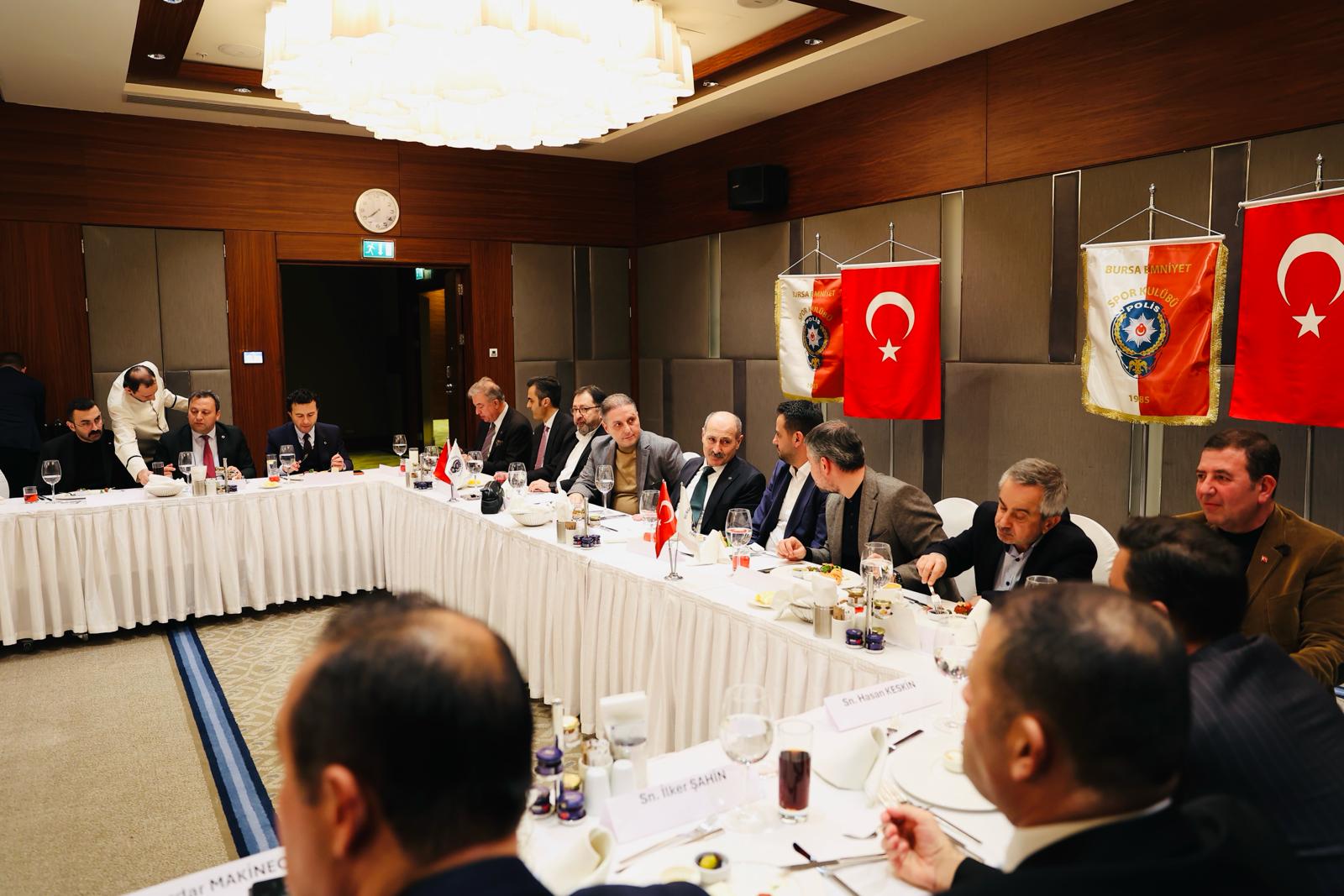 Başkan Erkan Yılmaz’ın ev sahipliğinde gerçekleşen iftar davetine; kulüp fahri başkanı olan Bursa İl Emniyet Müdürü Dr. Sabit Akın Zaimoğlu, Emniyet Spor Kulübü yöneticileri, Emniyet teşkilatının müdürleri de katıldı.