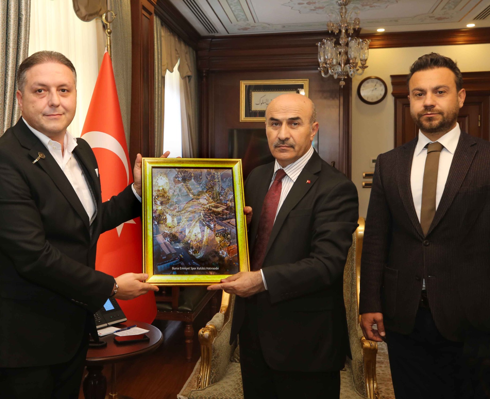 Bursa Emniyetspor yönetimi, Bursa Valisi Mahmut Demirtaş’ı ziyaret etti.