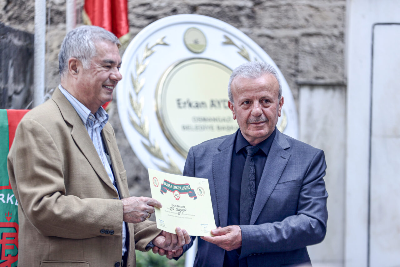 Erkek Lisesi Mezunlar Derneği Başkanı Recep Akyıldız da, Erkek Lisesi’nin, Bursa’yı bir kültür şehri yapan bir okul olduğunu belirterek, “Amacımız bu okulu bitiren ve iyi üniversite kazanan ihtiyaç sahibi ailelerin çocuklarına bursa vermek. Şu an 53 öğrenciye burs veriyoruz. Ayrıca, okulda eğitimine devam eden öğrencilere de burs vermeye çalışıyoruz. Onun dışında Erkek Lisesi öğrencileri, yerel ve ulusal anlamda çok ciddi projelerde başarı sağlıyorlar. Üye sayımızı daha da artırarak ıp derneğimizi ekonomik açıdan güçlü okulumuzu da akademik açıdan daha yüksek hale getirmek” diye konuştu.