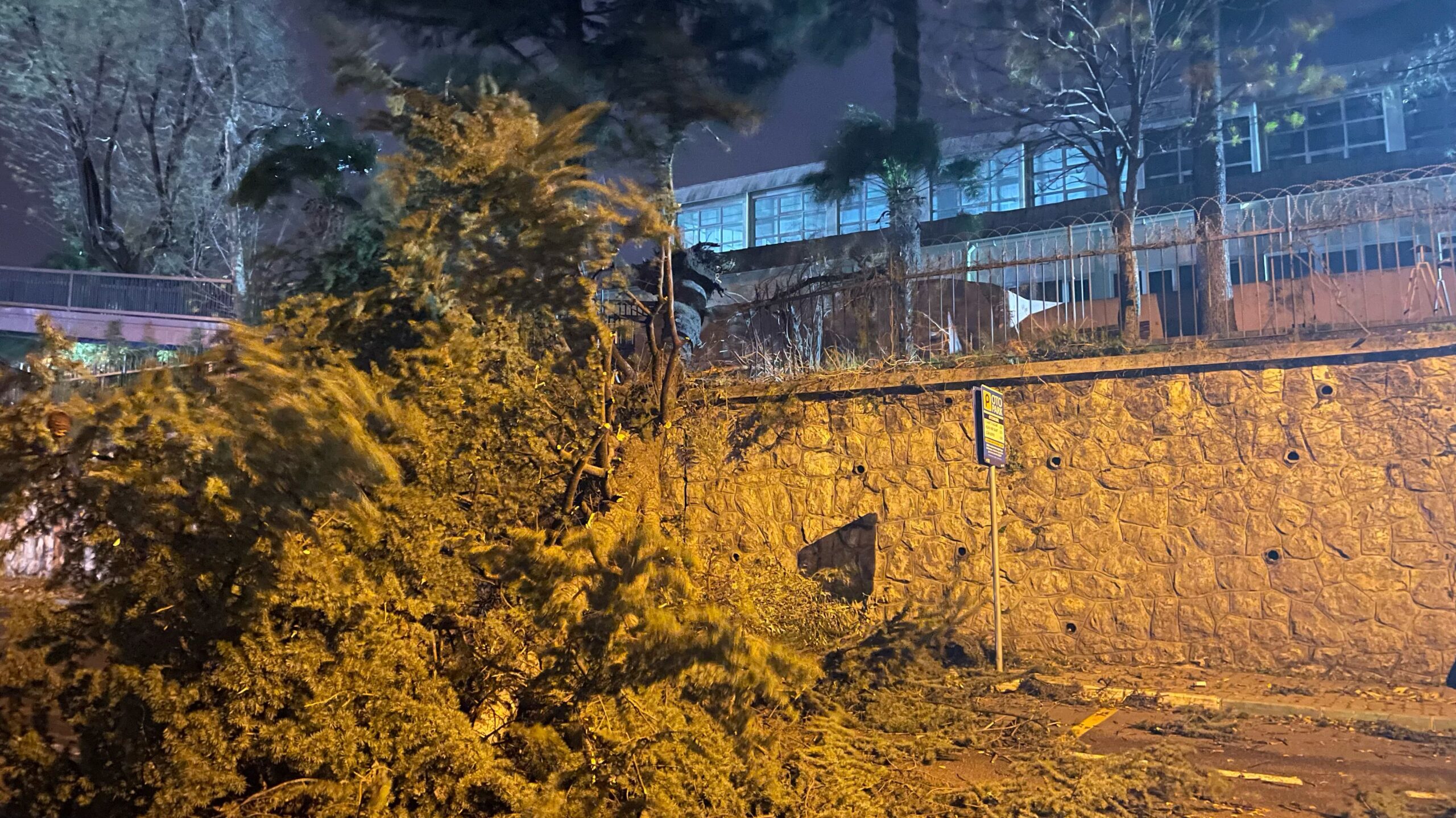 Öte yandan kentin birçok noktasında binaların çatıları uçtu, ağaçlar yola devrildi.