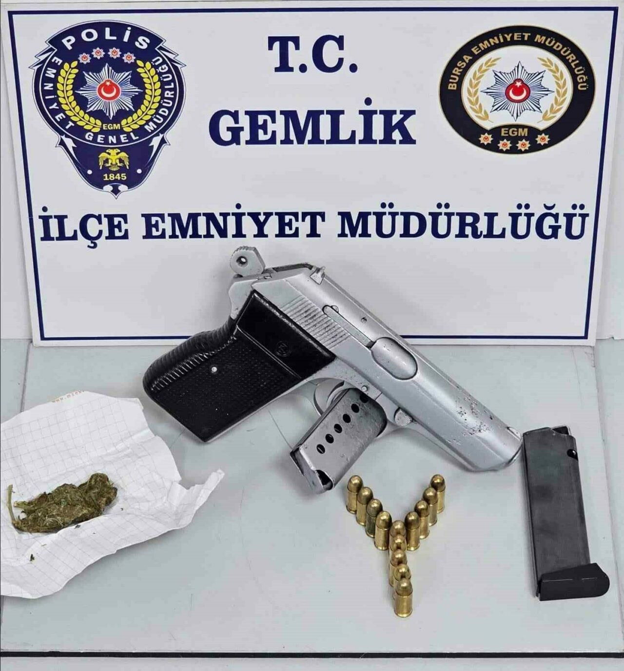 Çeşitli suçlardan aranan ve kesinleşmiş hapis cezası 14 yıl 8 ay 7 gün olan B.K. de dahil olmak üzere 5 aranan şahıs ve 1 adet ruhsatsız silah, 1 adet kurusıkı tabanca ile 53 fişek ele geçirildi. İlçe Emniyet Müdürlüğü ekipleri Gemlik’in huzur ve güvenini sağlamak üzere çalışmalarını hız kesmeden sürdürmeye devam edeceğinin altı çizildi.