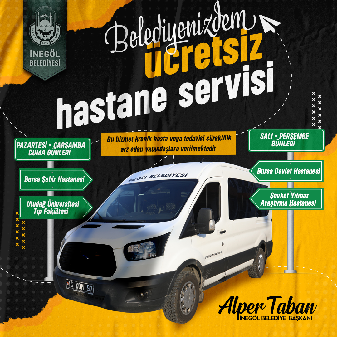 Pandemi sürecinde vatandaşların sağlık hizmetlerine daha kolay ve sorunsuz erişimi için İnegöl Belediyesi tarafından haftanın 3 günü Bursa Şehir Hastanesi ve Uludağ Üniversitesi Tıp Fakültesi Hastanesine ücretsiz servis hizmeti sunulmaya başlamıştı. Bu uygulama, vatandaşlardan gören ilgi üzerine pandemi sonrası da devam ediyor. Halen devam eden uygulamanın geliştirilerek devam edeceği açıklandı. Buna göre; Pazartesi, Çarşamba ve Cuma günleri Bursa Şehir Hastanesi ile Uludağ Üniversitesi Tıp Fakültesi Hastanesine yapılan servislere ek olarak Salı ve Perşembe günleri de Şevket Yılmaz Araştırma Hastanesi ile Bursa Devlet Hastanesine ücretsiz servis hizmeti sunulacak.