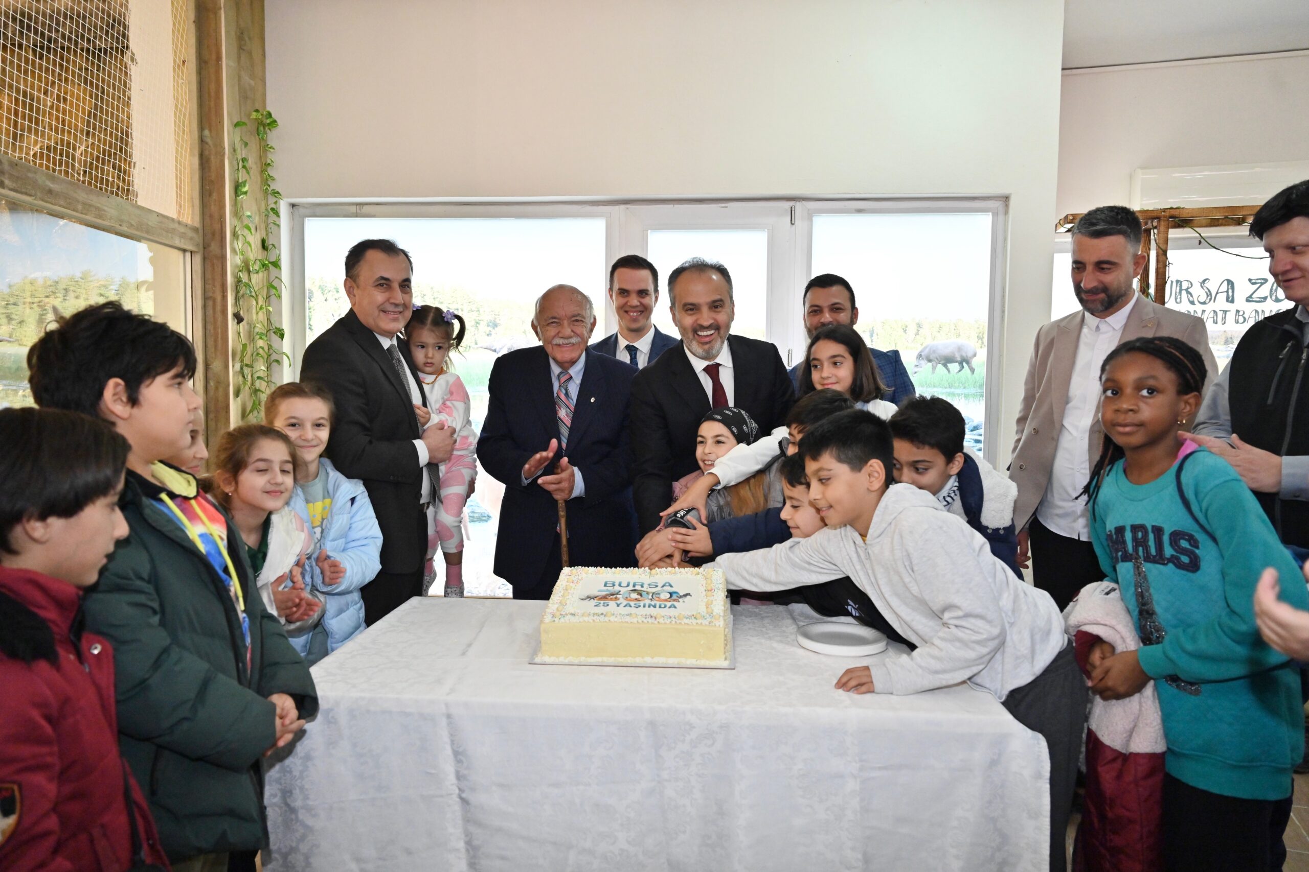 Bursa Büyükşehir Belediyesi Hayvanat Bahçesi’nin 25’inci yaşı, Büyükşehir Belediye Başkanı Alinur Aktaş, Bursa Hayvanat Bahçesi Koordinatörü Erdem Saker, Belediye Meclis üyeleri, öğretmenler ve çok sayıda öğrencinin katılımıyla kutlandı.