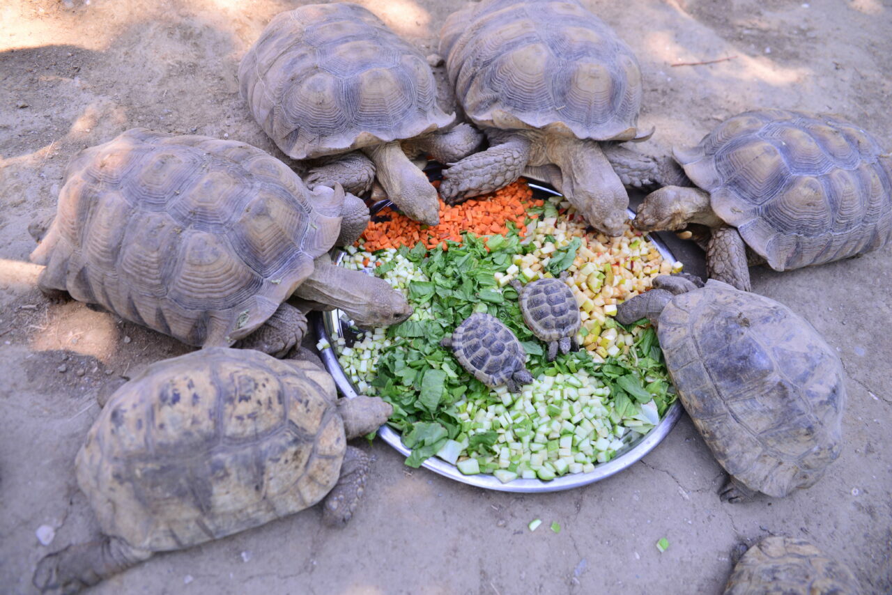 Hava sıcaklığının yüksek olması nedeniyle kaplumbağaları daha hafif gıdalarla beslediklerini belirten hayvan bakıcısı Ergün Kuva, “Şu an Afrika Evleri Barınağı’ndayız. Afrika kaplumbağası ve leopar kaplumbağalarının beslemesini yaptık. Malum havalar sıcak. Serin meyveler ve yeşillikler verdik. Hayvanlarımızı serin tutmaya çalışıyoruz. Havuç, marul, elma, kabak, ara sıra kavun, karpuz da veriyoruz. Bunun dışında yonca ve yem veriyoruz. Bu hayvanlar sıcağı seven hayvanlar. Ama bazen serine kaçmak istiyorlar. Ama sıcak iklim hayvanları bunlar” diye konuştu. (DHA)