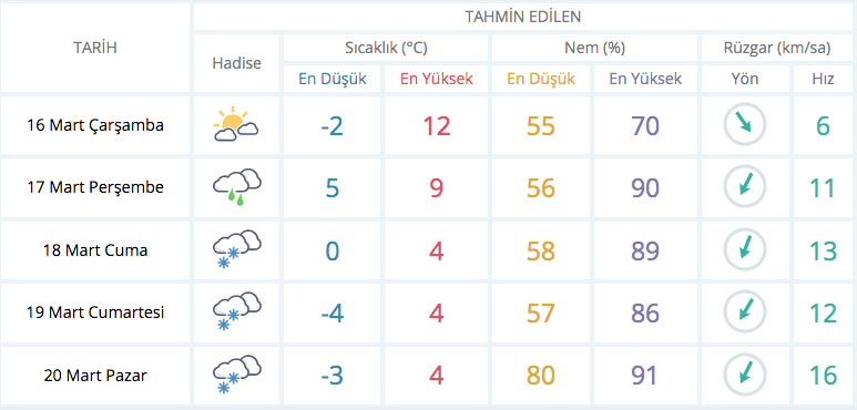 Yağışların, Marmara, Karadeniz ve Doğu Anadolu’da kuvvetli yer yer yoğun kar şeklinde olacağı tahmin edilirken, gelecek hafta ortasından itibaren yeni bir soğuk ve yağışlı havanın yurt genelinde etkili olacağı öngörülüyor.