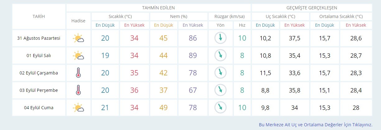 Meteorolojik tahminlere göre, Bursa’da hava sıcaklığı bugün en yüksek 34 derece olacak. Sıcaklıklar 1-2 derecelik artışlarla yükselişte olacak. Sıcaklıklar çarşamba günü 35 derece, perşembe günü ise 36 dereceye kadar yükselecek. Yetkililer, yaşlı ve çocukların dışarı çıkmamalarını istedi.