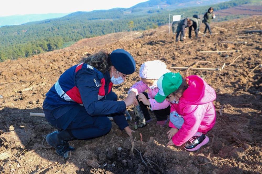Bursa İl Jandarma Komutanlığı, 11 Kasım Milli Ağaçlandırma Günü dolayısıyla Tarım ve Orman Bakanlığı’nın başlattığı “Geleceğe Nefes Dünyaya Nefes” projesi kapsamında Mudanya’nın Göynüklü mevkiinde 40 personel ile birlikte 6 bin fidanı toprakla buluşturdu.