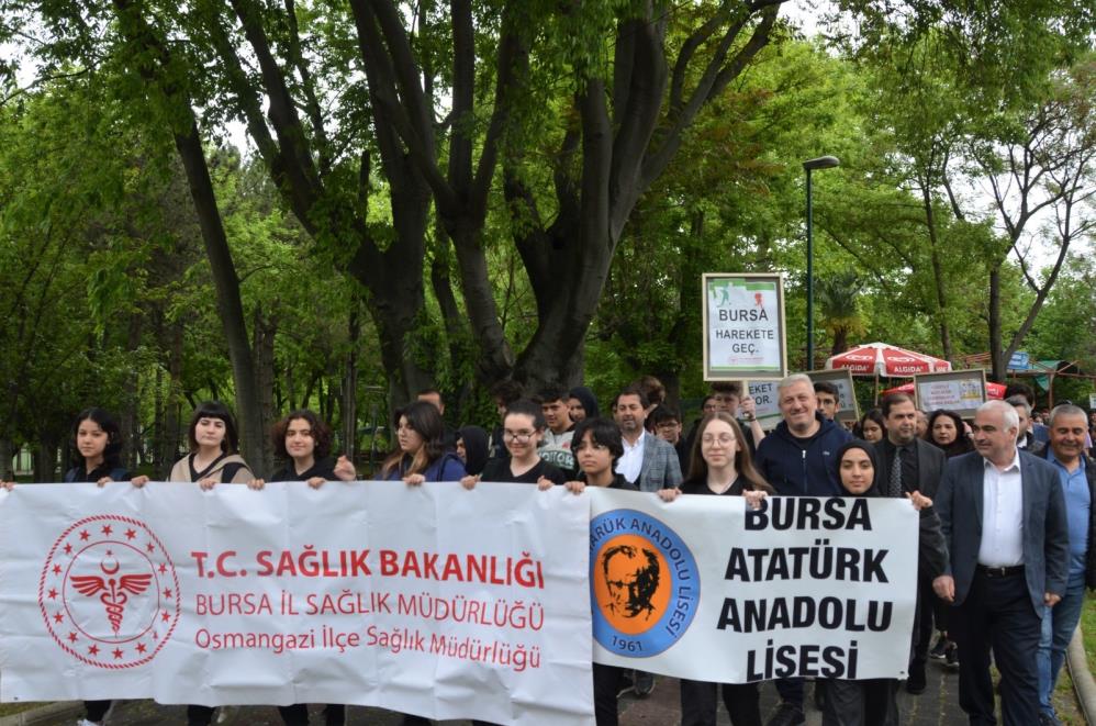 Atatürk Anadolu Lisesi’nden başlayan etkinlikte öğrenciler, ellerinde sağlıklı hayatı teşvik eden döviz ve pankartlarla Kültürpark’tan geçerek, Millet Bahçesi’ne yürüdü. Etkinliğe İl Sağlık Müdürü Dr. Fevzi Yavuzyılmaz, Osmangazi İlçe Sağlık Müdürü Dr. Betül Bakış, sağlık çalışanları, Atatürk Anadolu Lisesi öğretmen ve öğrencileri katıldı.