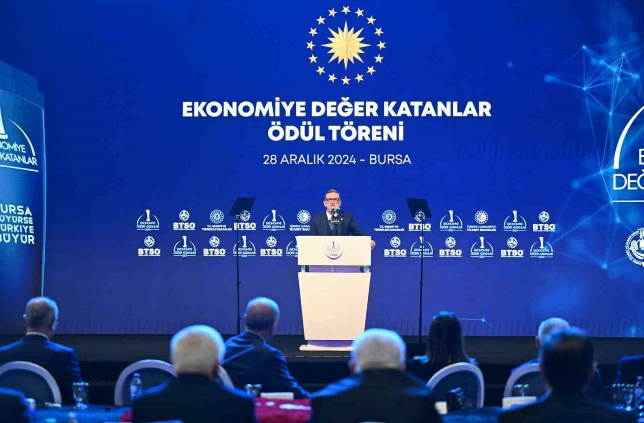 BTSO tarafından geleneksel olarak düzenlenen Ekonomiye Değer Katanlar Ödül Töreni Merinos Atatürk Kongre Kültür Merkezi’nde gerçekleştirildi. Törende, ‘İhracat’, ‘Sektör Liderleri’, ‘Gelir Vergisi’, ‘Kurumlar Vergisi’, ‘Yeşil Çevre ve Sürdürülebilirlik’ kategorilerinde başarılarıyla örnek olan kişi ve kurumlar ödüllerini Sanayi ve Teknoloji Bakanı Fatih Kacır, Ticaret Bakanı Ömer Bolat, İçişleri Bakanı Ali Yerlikaya, BTSO Yönetim Kurulu Başkanı İbrahim Burkay ve Meclis Başkanı Ali Uğur’un elinden aldı. Organizasyon kapsamında Türkiye’nin yüksek teknolojili sanayi dönüşümünün öncüsü olan TEKNOSAB’da faaliyete başlayan firmaların açılışları da gerçekleştirildi.