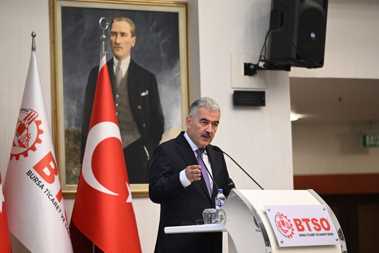 BTSO Yönetim Kurulu Başkanı İbrahim Burkay, maliyet bazlı rekabet anlayışının yerini markalaşma, tasarım ve yenilikçiliğe bıraktığını dile getirerek, “Bu dönüşümü sürdürebilmek için en çok ihtiyaç duyduğumuz şey güçlü bir finansal zemin.” dedi.