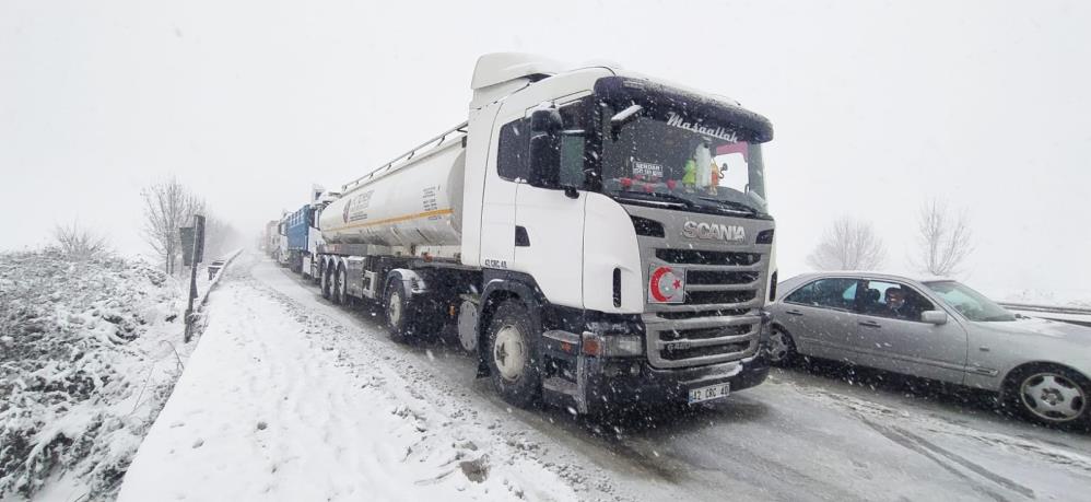 Kaza ve yoğun yağış sebebiyle yaklaşık 10 kilometrelik araç kuyruğu oluşurken, ekiplerin çalışmasının sürdüğü bildirildi.