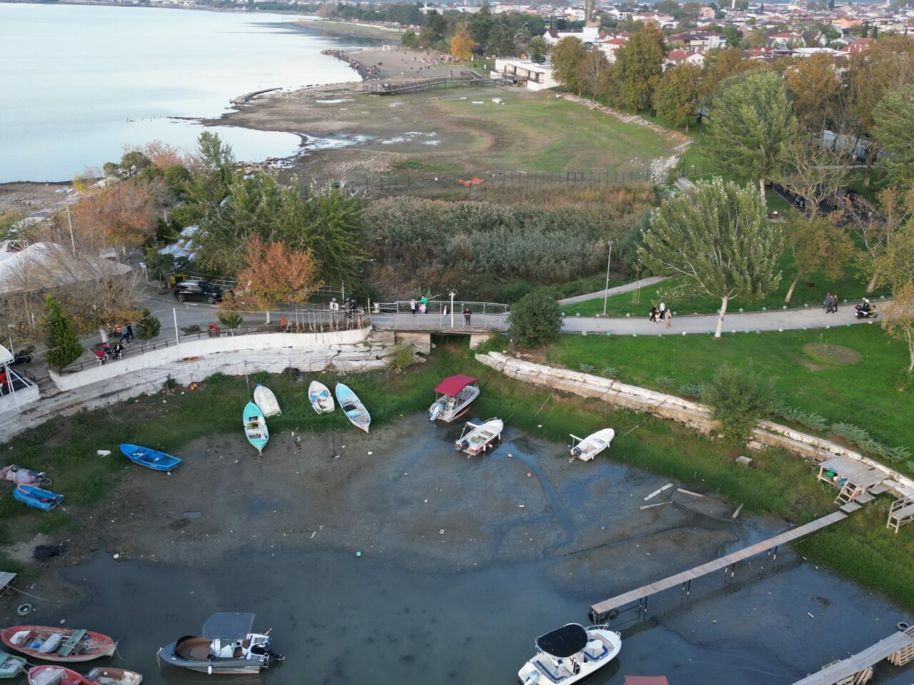 Uzunluğu 33, genişliği 12, çevresi 95 kilometre olan İznik Gölü’nün, son yıllarda hem Orhangazi hem de İznik sahilinde bulunan iskeleler karada kalırken, yer yer 350 metreye ulaşan çekilme nedeniyle balıkçı kayıkları ile tekneler de karaya oturdu. İznik Gölü’nde su seviyesinin her geçen gün düşmesi geçimini gölden sağlayan balıkçı ve çiftçileri de zor durumda bırakıyor. 1,5 yıl önce 20 Nisan 2024’te İznik Limanı’ndan çekilen cep telefonu görüntüsünde; kayıkların su içinde bağlı olduğu görülürken, aynı noktadaki dron kamerası görüntülerinde ise sahile vuran sudan geriye, çamur ve balçıkla kaplı alanların kaldığı görüldü.