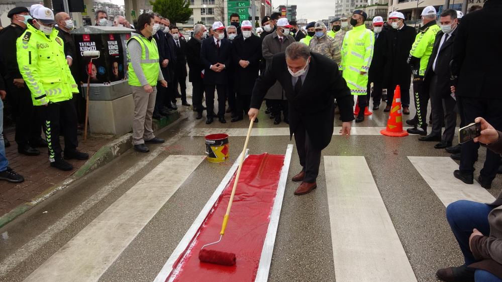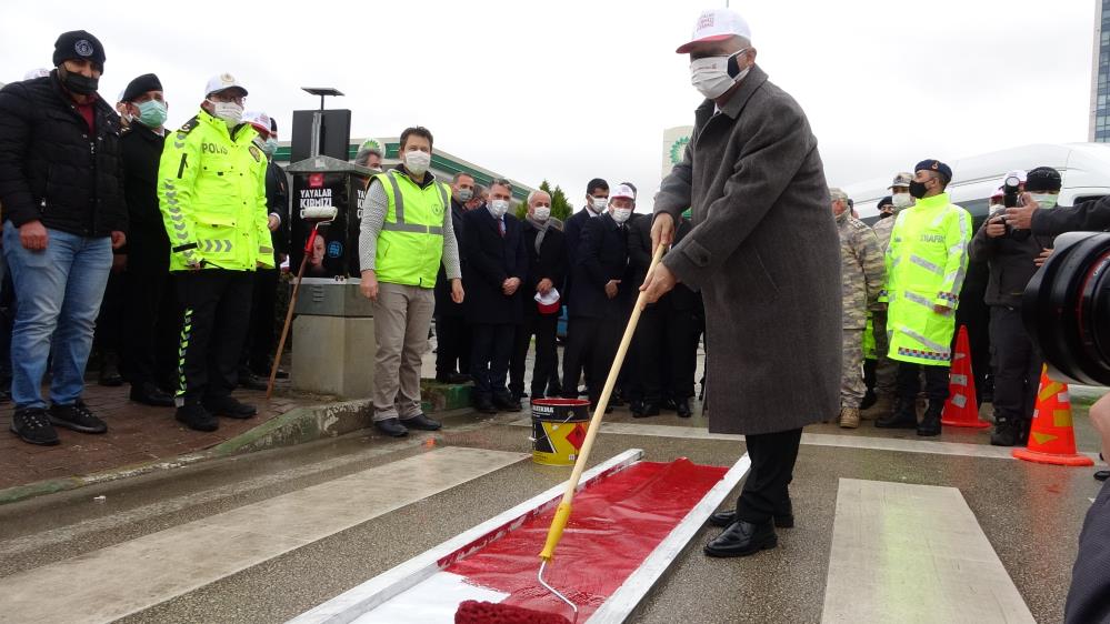 Valilikten konuyla ilgili yapılan açıklamada, “Bilindiği üzere Ülkemiz kara yollarında yayaların trafik güvenliğinin sağlanarak can kayıplarının azaltılması amacıyla,26 Ekim 2018 tarihinde 2918 sayılı Kara Yolları Trafik Kanunu’nun 74’üncü maddesinde yapılan düzenleme ile “sürücüler, görevli bir kişi veya ışıklı trafik işareti bulunmayan ancak trafik işareti veya levhalarıyla belirlenmiş kavşak giriş ve çıkışları ile yaya ve okul geçitlerine yaklaşırken yavaşlamak, varsa buralardan geçen veya geçmek üzere bulunan yayalara durarak ilk geçiş hakkını vermek zorundadırlar” hükmü getirilmiştir. Bu düzenlemeden hareketle; İçişleri Bakanlığımızca “Öncelik Hayatın, Öncelik Yayanın” sloganıyla 2019 yılı“ Yaya Öncelikli Trafik Yılı ” olarak ilan edilmiş ve “Trafikte Yaya Önceliği Kampanyası” hayata geçirilerek 6 Şubat 2019 tarihinde “Devletin tüm unsurları ile farkındalık eyleminde olduğunu göstermek” amacıyla ülke genelinde eş zamanlı olarak etkinlikler düzenlenmiştir. Bu etkinliklerin devamı niteliğinde olan ve bu defa yaya güvenliğini sağlamak üzere “Devletin tüm unsurlarıyla konunun takipçisi ve nöbette olduğunu göstermek” için 02 Ekim 2019 tarihinde ülke genelinde “Hepimiz yaya geçitlerindeyiz” sloganıyla farkındalık etkinlikleri eş zamanlı olarak gerçekleştirildi. 2021 yılı süresince yürütülecek faaliyet ve destekleyici kampanyaların etkisini artırmak, yaya ve okul geçitleri öncesinde sürücülerin yer/zemin işaretlemeleriyle bir kez daha uyarılarak dikkatlerini daha üst düzeye çıkarmak, bu alanlarda yavaşlamalarını ve yayalara ilk geçiş hakkını vermelerini sağlamak amacıyla, tüm illerimizde eş zamanlı olarak Devletimizin tüm unsurları ile farkındalık eyleminde olduğunu göstermek amacıyla etkinlikler düzenlendi. Bu kapsamda Yaya önceliği konusunda toplumda farkındalığı en üst seviyeye çıkarmak ve yaya önceliğine verilen önemi vurgulamak amacıyla 30 Mart 2021 Salı günü 12.00-15.00 saatleri arasında ışıksız yaya geçitlerinde bulunan beyaz şeritlerden ortadaki sembolik olarak kırmızıya boyanacak” ifadeleri kullanıldı. İHA