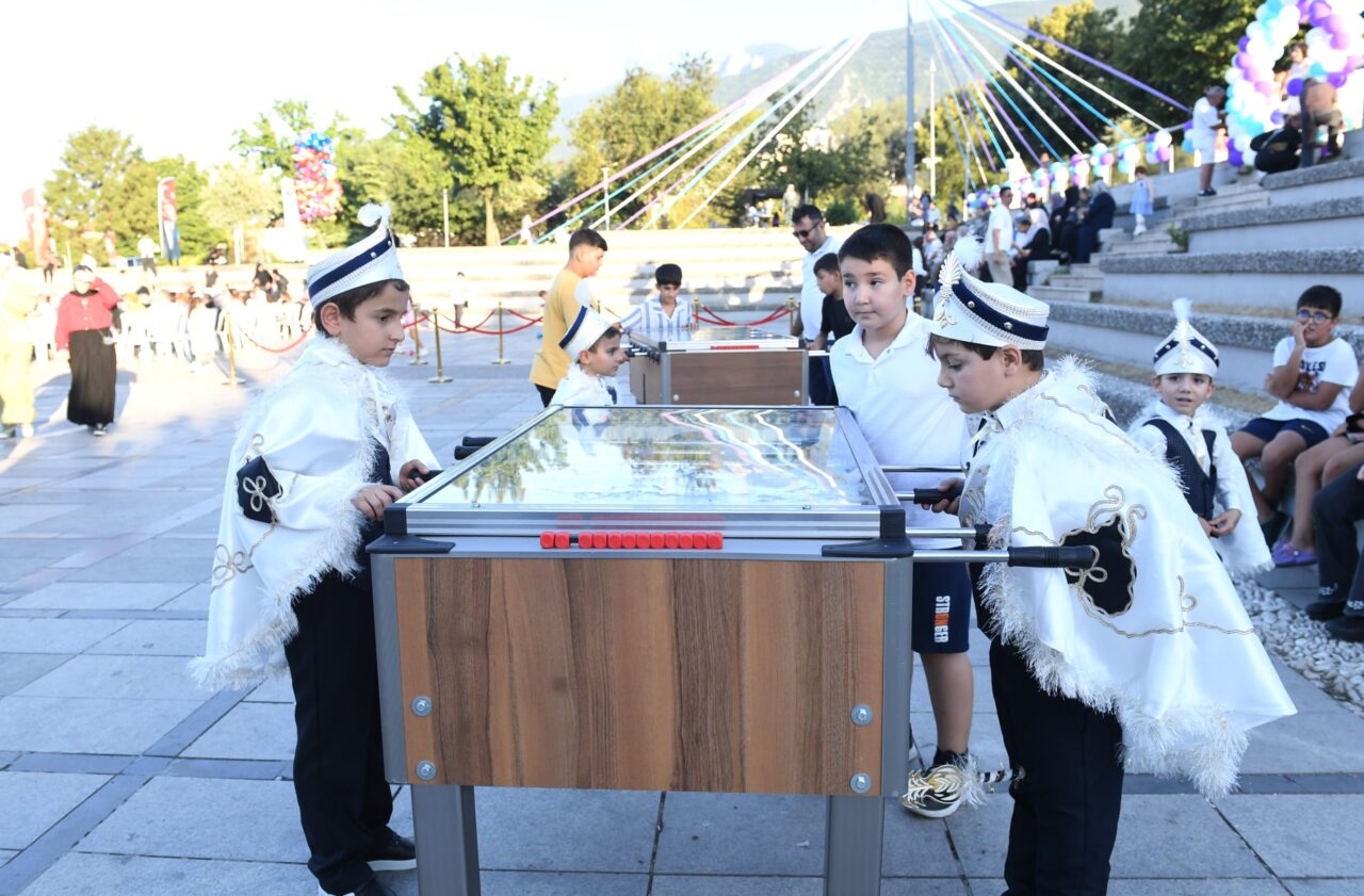 Sünnet şöleni için kendilerine destek olan hastanelere teşekkür ederek sözlerine başlayan Osmangazi Belediye Başkanı Erkan Aydın, “Osmangazi Belediyesi ve Osmangazi Kent Konseyi olarak 200 çocuğun sünnet etkinliğini gerçekleştirdik. Sünnet olan çocuklar için şölen yapıyoruz. Allah sünnet olan çocukların hepsine mürüvvetlerini göstersin. Bugün yaptığımız etkinlikle çocukların hayatlarında güzel bir iz bırakmayı amaçlıyoruz. Osmangazi’nin 40 mahallesinden 200 çocuk erkekliğe ilk adımını attı bu geleneksel sünnet şölenini her yıl tekrarlayarak hem ailelere hem de çocuklara unutulmaz anlar yaşatırız.