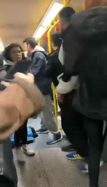Metro ile seyahat eden iki grup, henüz bilinmeyen bir sebepten dolayı tartışmaya başladı.