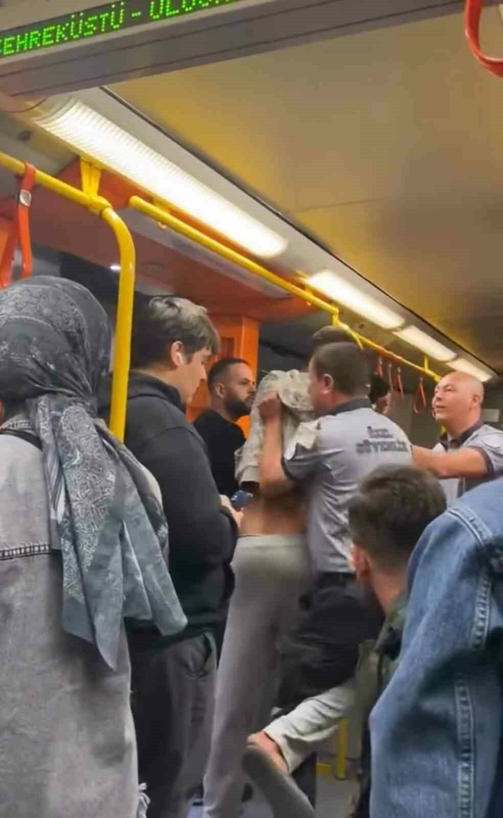 Diğer yolcuların ihbarı üzerine metro güvenlikleri duruma müdahale etti.