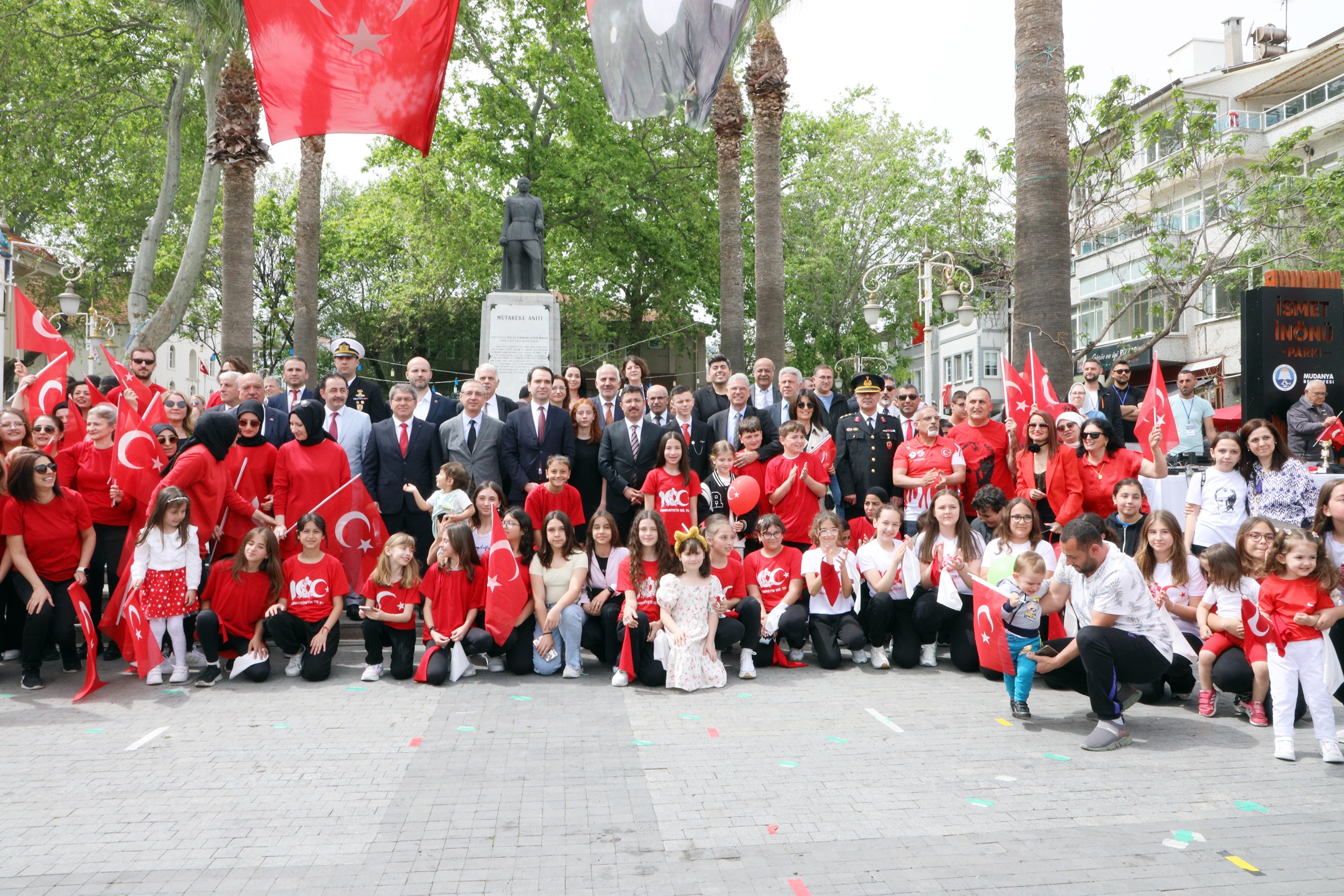 Mudanya’daki törenler, İskele Meydanı’ndaki Atatürk Anıtı’na çelenk sunumuyla başladı. Bayram kutlamaları, Mudanya protokolü ve öğrencilerin İskele Meydanı’ndan Mütareke Meydanı’na yapılan bayram yürüyüşüyle devam etti. Mudanya Belediyesi’nin Mütareke Meydanı’nda düzenlendiği 23 Nisan Çocuk Şenliği’nde çocuklar bayram coşkusunu doyasıya yaşadı. İsmet İnönü Parkı’nda resim, kağıt katlama, sokak oyunları ve yüz boyama atölyelerinde keyifli zaman geçiren çocuklar, gösterileri de ilgiyle izledi.