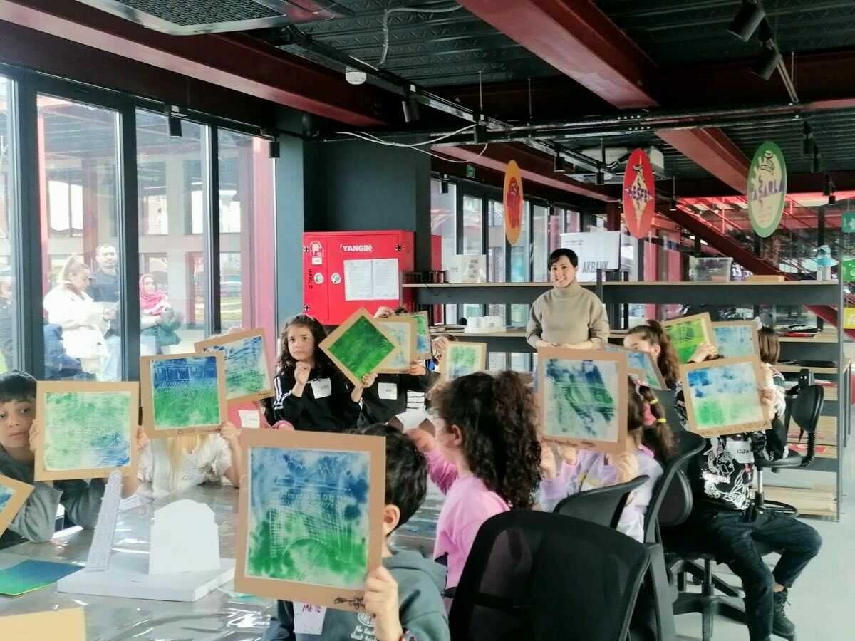 Günün ikinci etkinliği olan “Dönüşüm” atölyesinde ise odak noktası edebiyat ve doğa gözlemi oldu. Franz Kafka’nın Dönüşüm romanından esinlenilerek hazırlanan içerikte çocuklar, böceklerin ve küçük canlıların dünyasını mercek altına aldı. Makro fotoğraflar üzerinden canlıların renk, desen ve biçimlerini detaylıca inceleyen katılımcılar, bu gözlemlerden yola çıkarak kendi hayali böceklerini tasarladı.