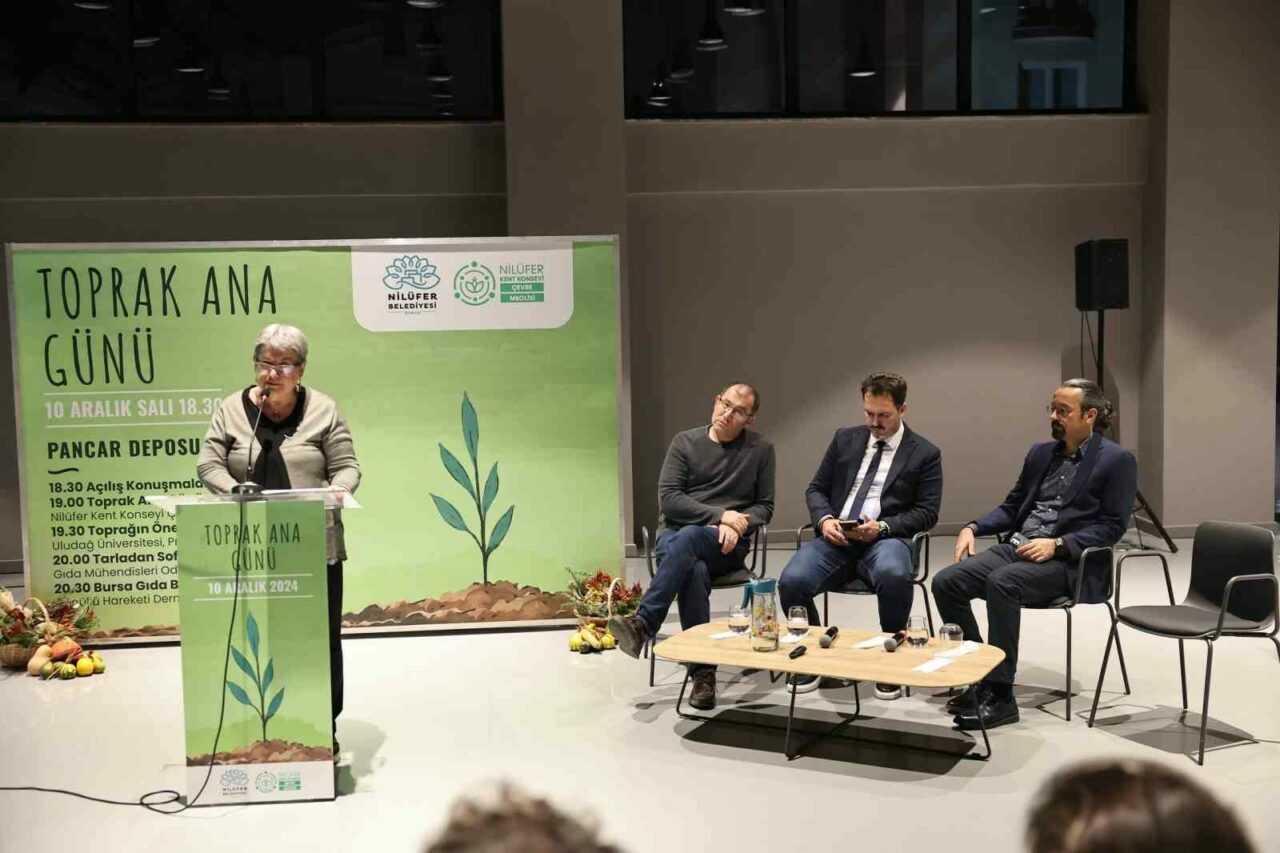 Açılış konuşmalarının ardından düzenlenen söyleşide, Nilüfer Meclisi Kent Konseyi Çevre Meclisi Başkanı Semiha Öztan “Toprak Ana Günü ve Önemi”, Bursa Uludağ Üniversitesi Ziraat Fakültesi Öğretim Üyesi Prof. Dr. Barış Bülent Aşık “Toprağın Önemi”, TMMOB Gıda Mühendisleri Odası Bursa Şubesi Başkanı Serkan Durmuş, “Tarladan Sofraya, Güvenli Gıda”, Gönüllü Hareketi Derneği Yönetim Kurulu Başkanı Sertaç Şipka ise “Bursa Gıda Bankası Modeli” başlıklı sunum gerçekleştirdi.