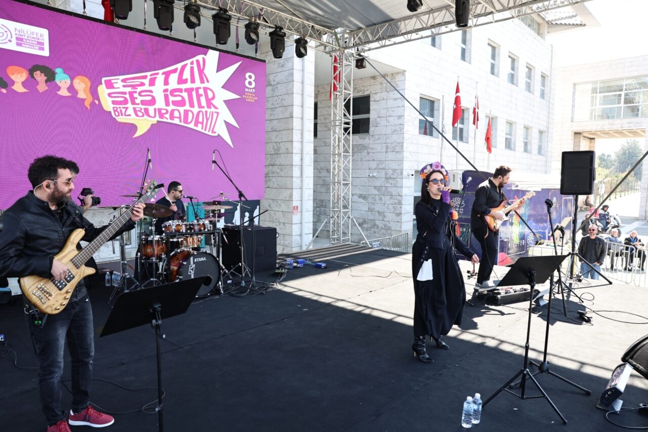 Nilüfer Belediyesi ve Nilüfer Kent Konseyi, 8 Mart Dünya Kadınlar Günü’nde geniş katılımlı bir yürüyüş ve basın açıklaması düzenledi. “Eşitlik Ses İster, Biz Buradayız” sloganıyla Nilüfer Kent Konseyi önünde başlayan yürüyüşte kadınlar, eşitlik ve direniş sloganları eşliğinde Nilüfer Belediyesi Halk Evi önündeki Cumhuriyet Meydanı’na kadar yürüdü. Etkinliğe, Nilüfer Belediye Başkan Yardımcıları Serpil Altun ve Bukle Erman ve meclis üyeleri ile Nilüfer Belediye Başkanı Şadi Özdemir’in eşi Nuray Özdemir de katıldı. Korteje, Nilüfer Kent Konseyi Bisiklet Çalışma Grubu da bisikletleriyle eşlik etti.