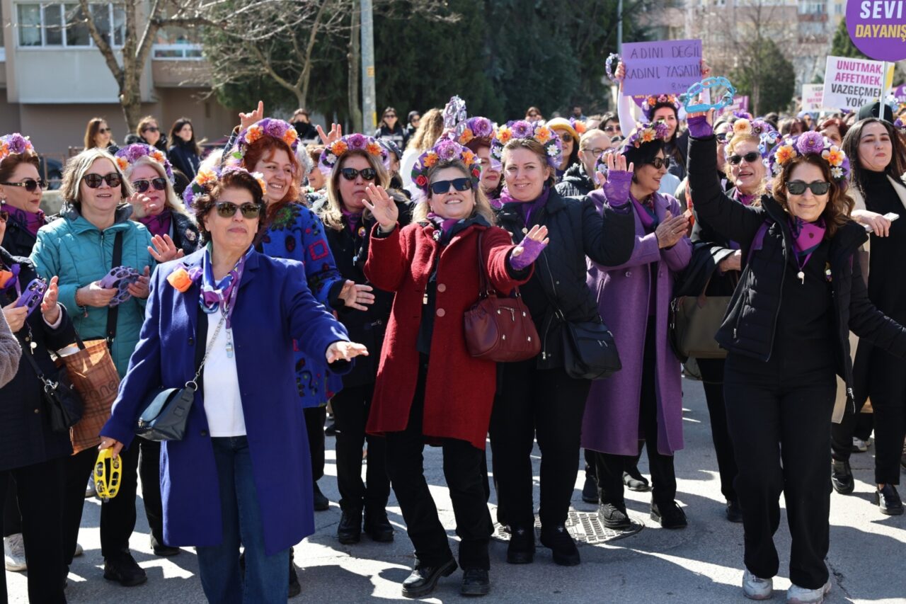 Kortejin Cumhuriyet Meydanı’na ulaşmasının ardından, Nilüfer Kent Konseyi Kadın Meclisi Başkanı Tülin Demir basın açıklamasını okudu. Demir, konuşmasında Türk Medeni Kanunu’nun yürürlüğe girişinin 100’üncü yılına dikkat çekerek, bu kanunun kadınların yurttaş olarak tanınmasının hukuki temeli olduğunu hatırlattı. Nafaka hakkının sınırlandırılması ve boşanmaların zorlaştırılması gibi gündemlerin kadınları şiddet içeren evliliklere mahkum etme girişimi olduğunu belirten Demir, “Kadınların ekonomik ve hukuki güvencesini çalmaya hazırlanıyorlar, ancak bizler buna geçit vermeyeceğiz” dedi.