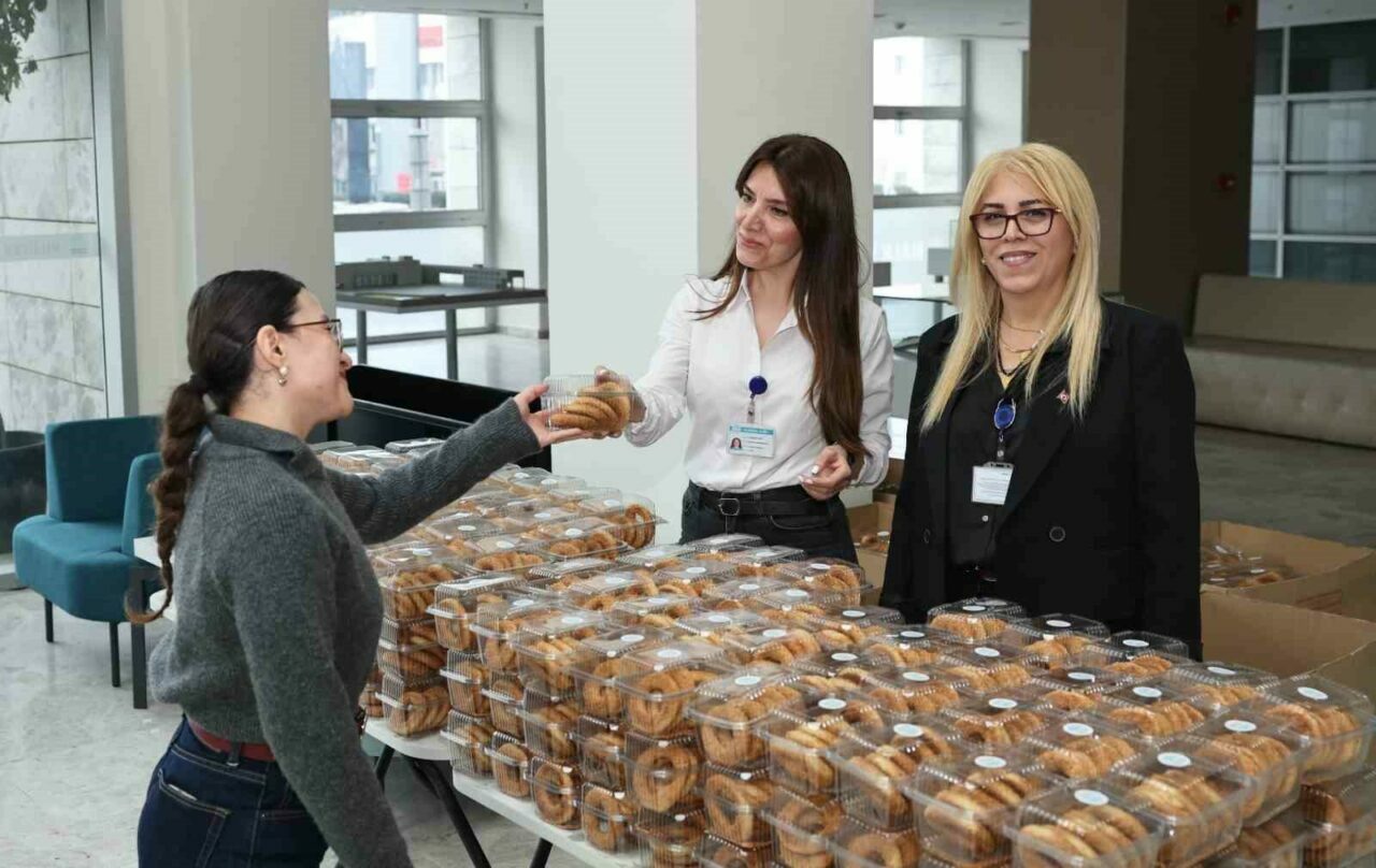 Nilüfer Belediyesi personeline de Berat Kandili nedeniyle gündüz Halk Evi ve Alaaddinbey Hizmet Binası önünde kandil simidi ikramı yapıldı.