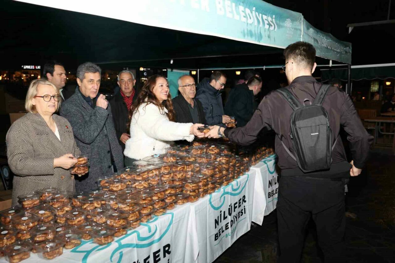 Dağıtım programına Nilüfer Belediye Başkan Yardımcısı Okan Şahin ve belediye meclis üyeleri de katıldı. Cami çıkışında vatandaşlarla bir araya gelen Şahin ve meclis üyeleri, mahalle sakinlerinin kandilini kutlayarak ikramlarda bulundu.