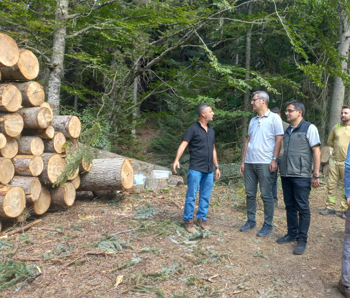 Muratdere Orman İşletme Şefliği’nde devam eden üretim faaliyetlerini inceleyen Şahan, İşletme Müdürü Engin Çakşır’dan çalışmalar hakkında bilgi aldı.