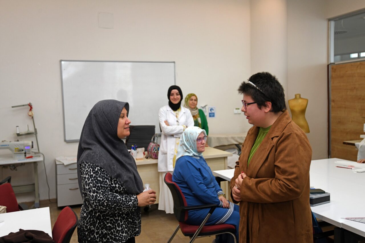 Sınıfları gezerek kursiyerlerin yaptıkları çalışmaları yerinde görme fırsatı bulan engelli bireyler, aynı zamanda günlük yaşamda karşılaştıkları zorluklardan şehirlerin erişebilirliğine kadar pek çok konuda sorular yöneltti.