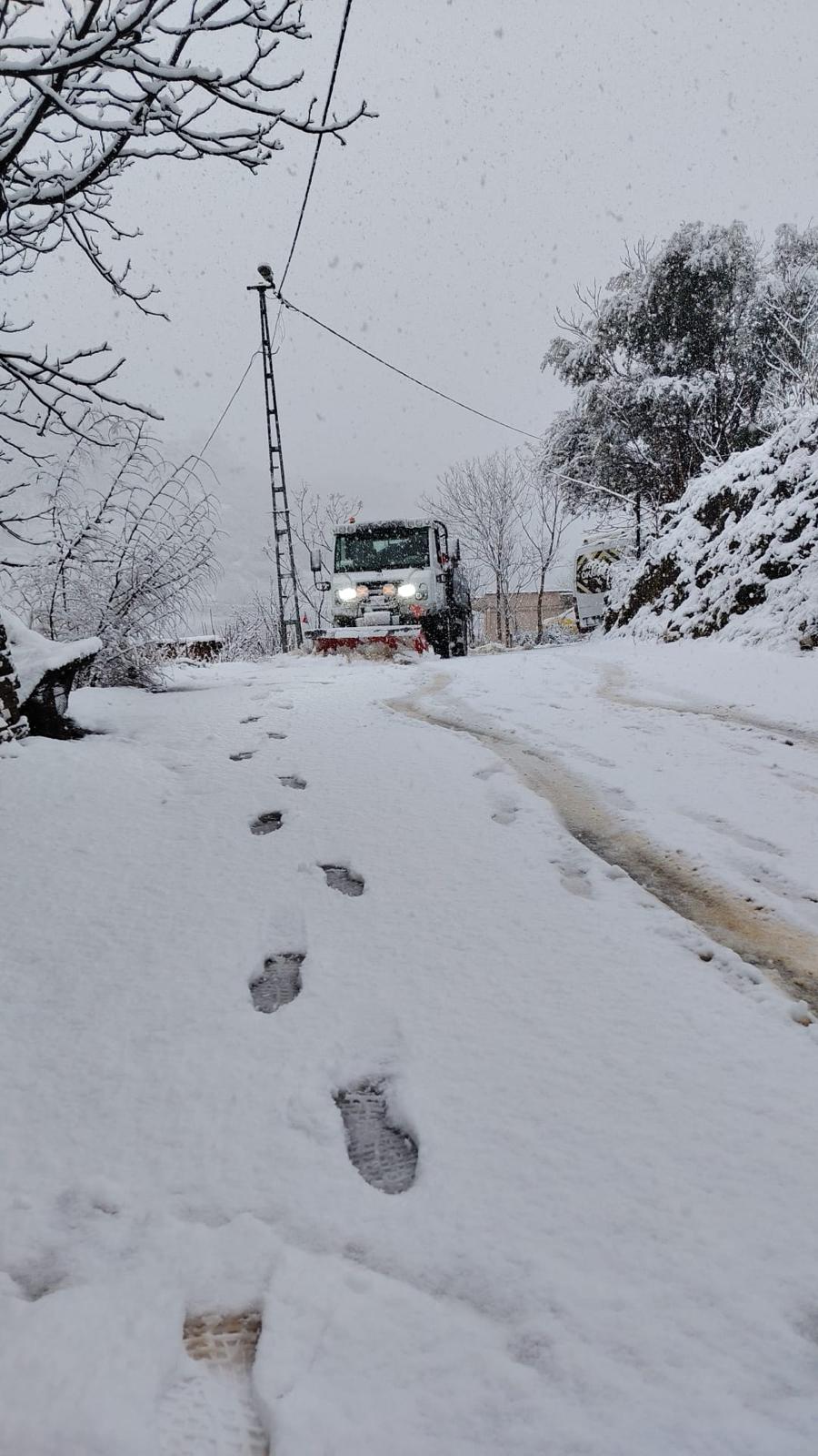 Karla mücadele kapsamında kırsal Hüseyinalan, Kirazlı, Elmaçukuru, Soğukpınar ve Bağlı mahalleleri başta olmak üzere birçok noktada iş makineleriyle yollar temizlenirken, buzlanmaya karşı tuzlama çalışmaları da titizlikle gerçekleştirildi.