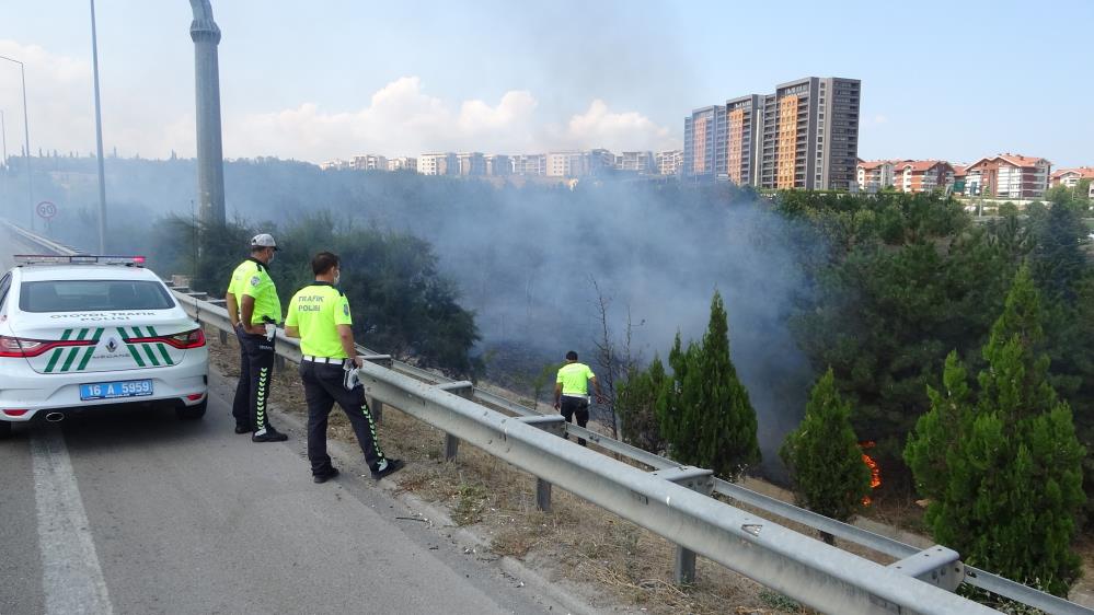 Yangın, öğle saatlerinde İstanbul-Bursa Otoyolu Mudanya kavşağında bulunan ağaçlık alanda meydana geldi.
