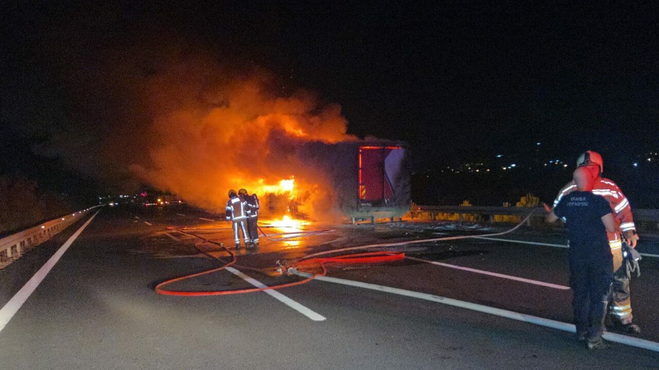İstanbul-İzmir Otoyolu’nda, İstanbul’dan Bursa istikametine giden Ramazan Altıntop yönetimindeki kargo kamyonu, Orhangazi çıkışı yakınlarında, seyir halindeyken bilinmeyen bir nedenle yanmaya başladı.