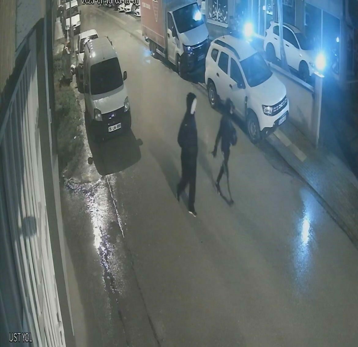 Güvenlik kameralarına yakalanan şüpheliler, görüntülerde bir sitenin duvarından atlayarak içeri girdiği ve çaldıkları motosikletle de son sürat kaçtığı görüldü.